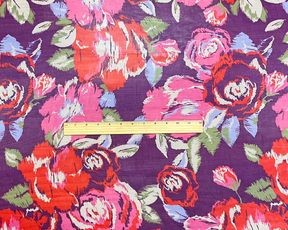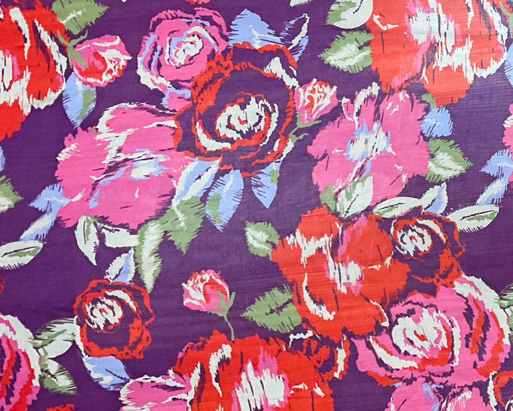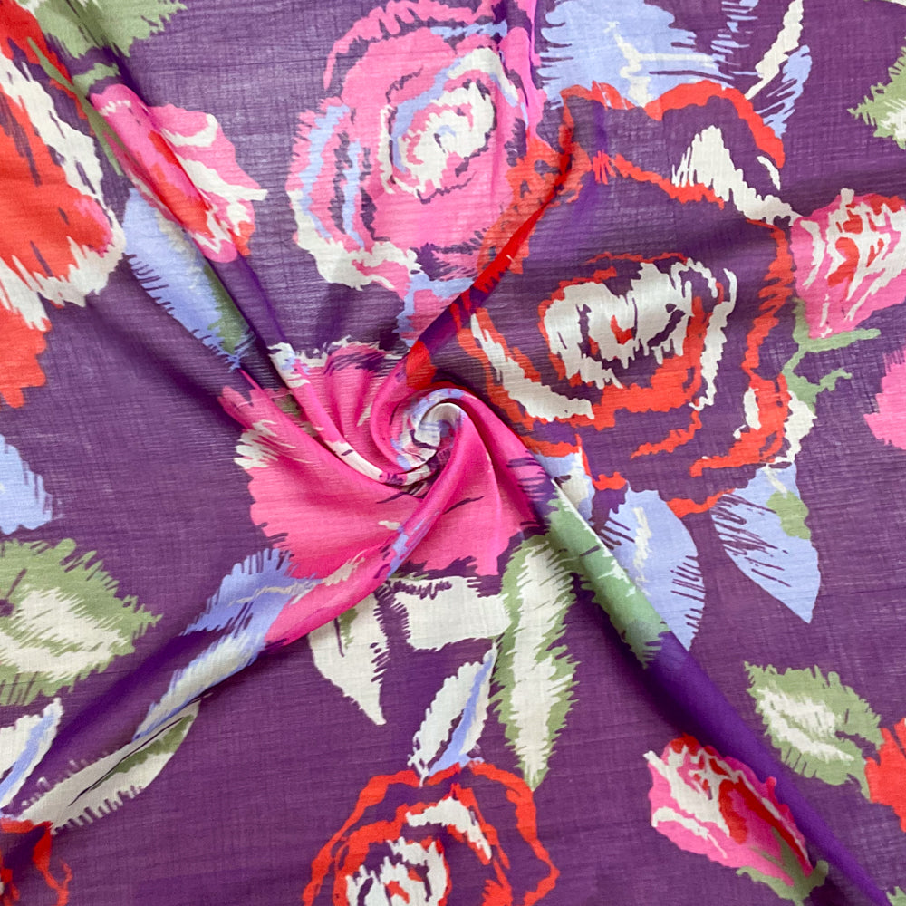 Purple-Pink-Multi Poly Floral Printed Crinkle Yoryu Chiffon Woven Fabric