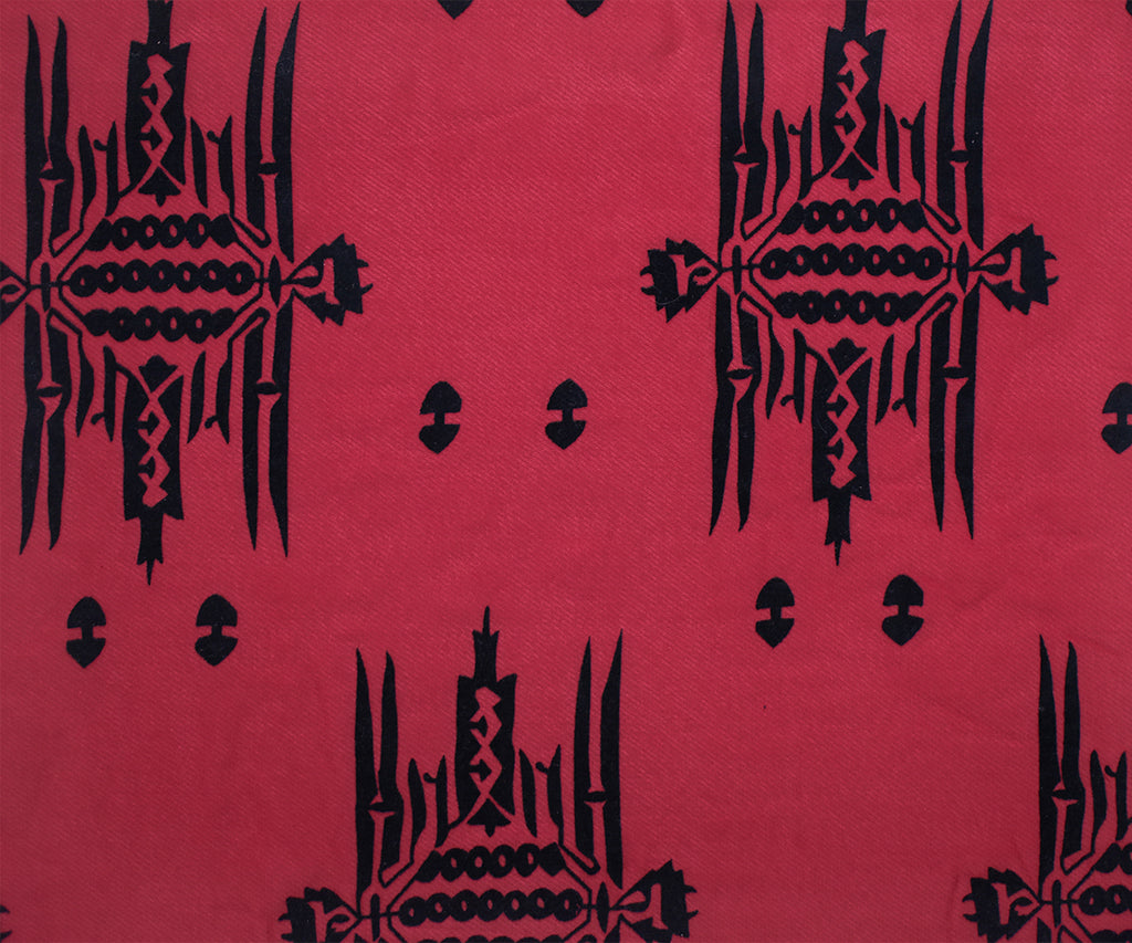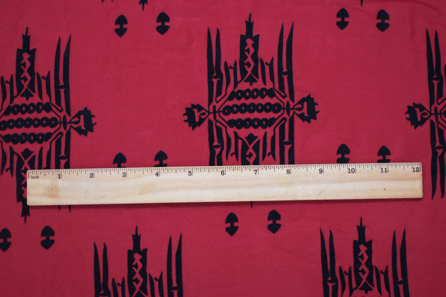 Red-Black Poly Aztec Motif Velvet Flocked Printed Chiffon Woven Fabric