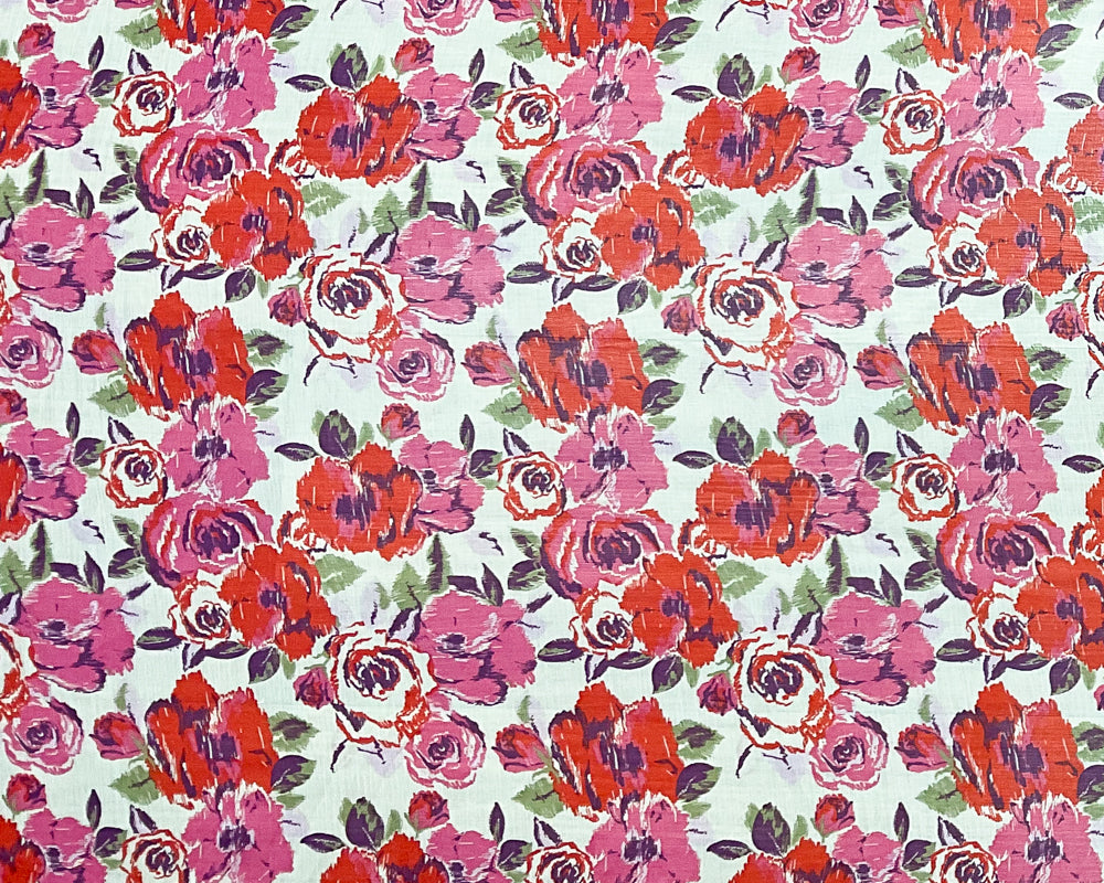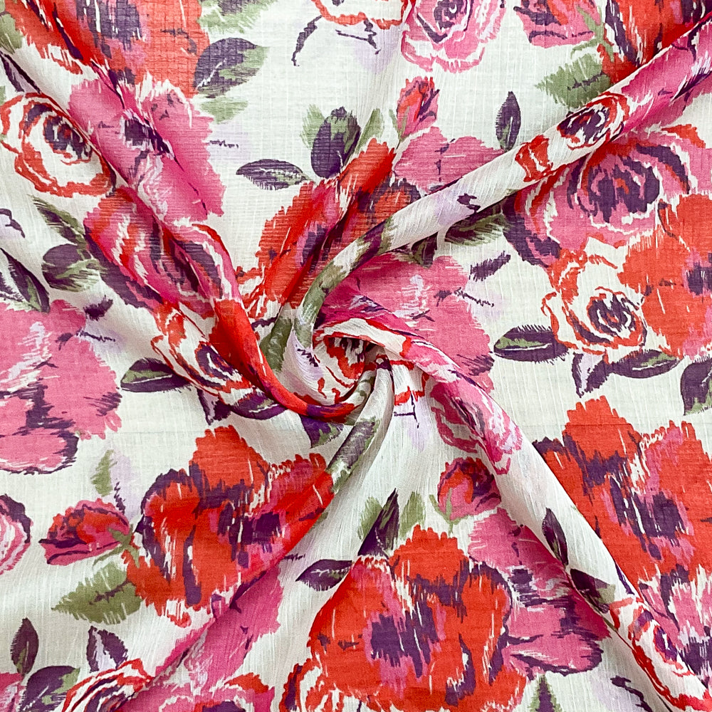 Red-Ivory-Multi Poly Floral Printed Crinkle Yoryu Chiffon Woven Fabric