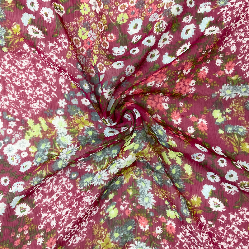 Red-Multi Poly Floral Printed Crinkle Yoryu Chiffon Woven Fabric