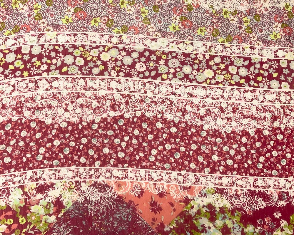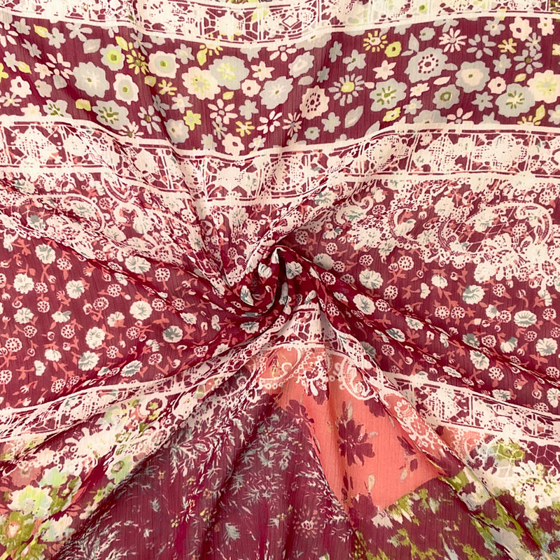 Red-Multi Poly Stripe Floral Print Yoryu Chiffon Woven Fabric