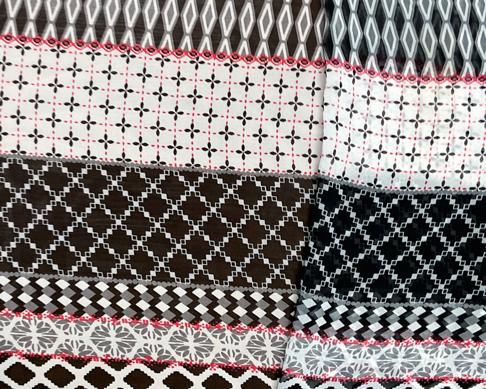 Red-White-Multi Poly Multi Pattern Printed Chiffon Woven Fabric