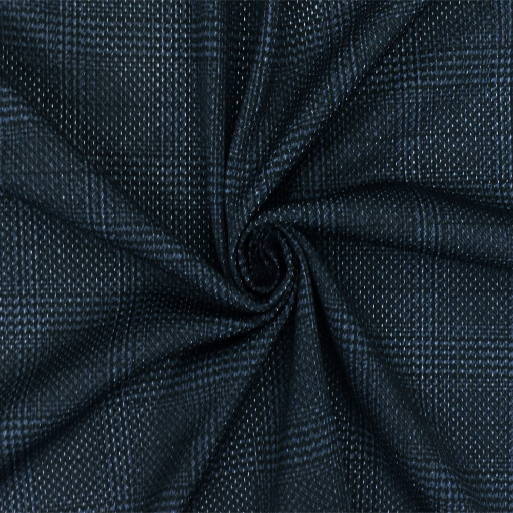 Dusty Blue-Black Plaid Printed Stretch Polyester Athletic Mesh Knit Fabric
