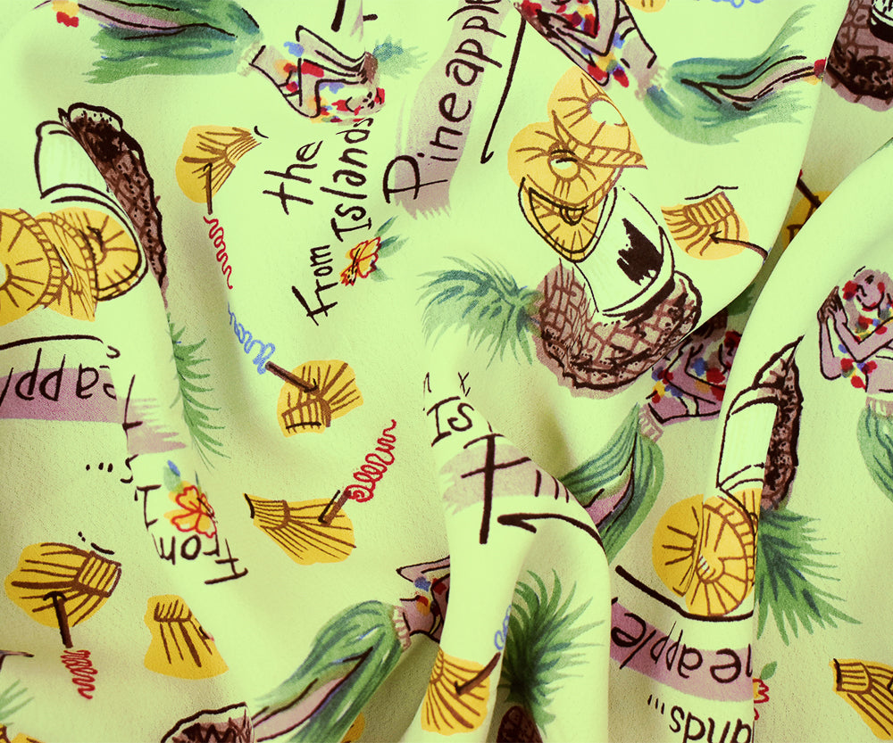 Light Green-Pink-Multi Hawaiian Theme Printed Rayon Crepe Faille Woven Fabric