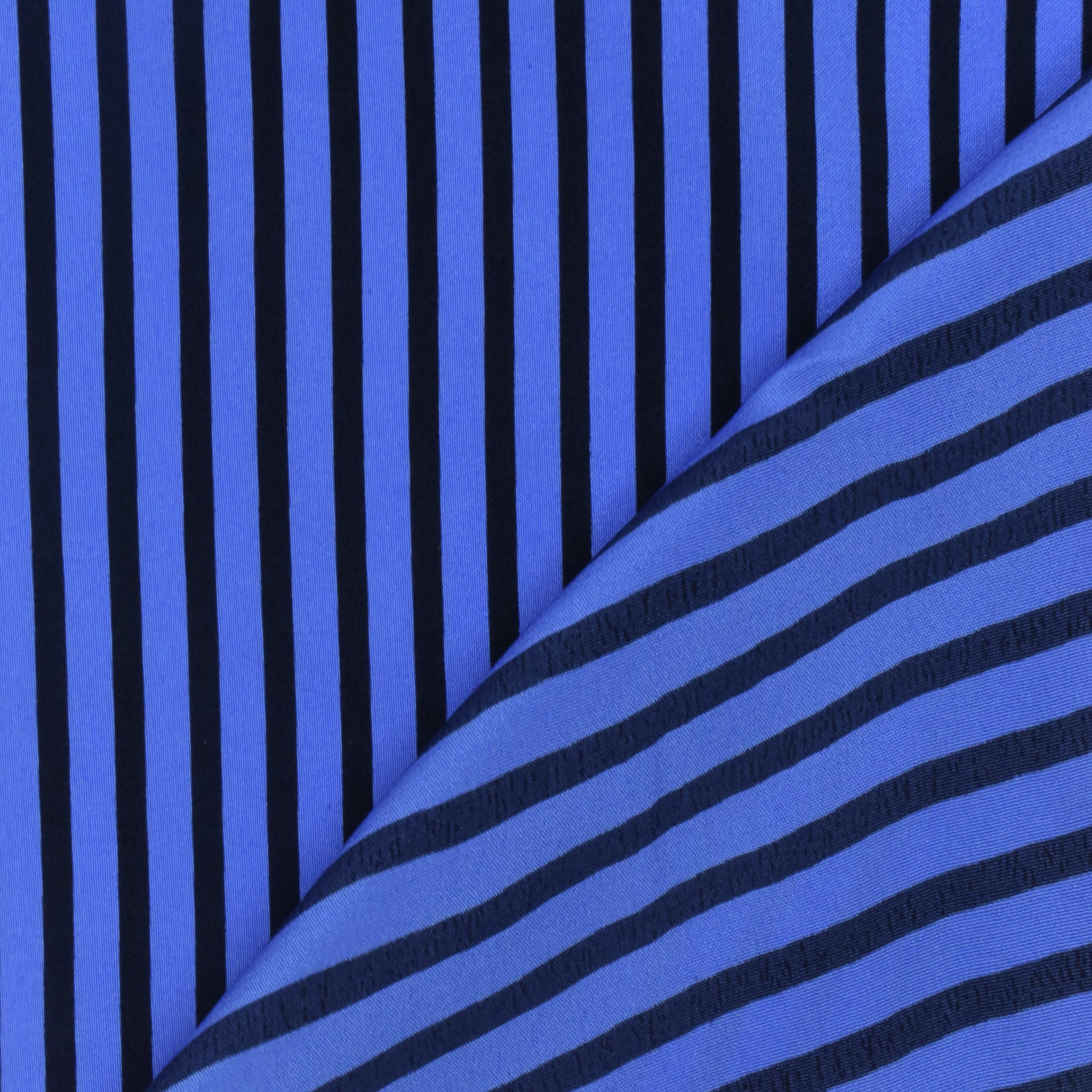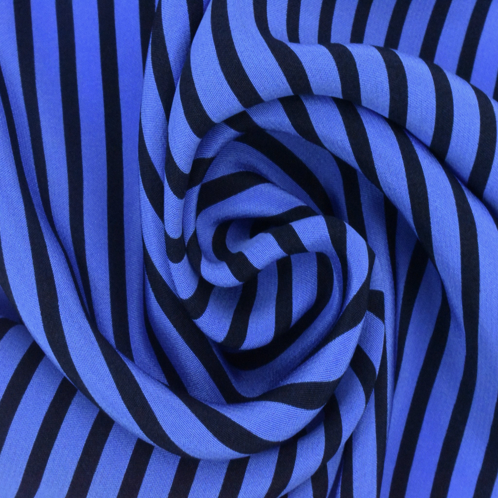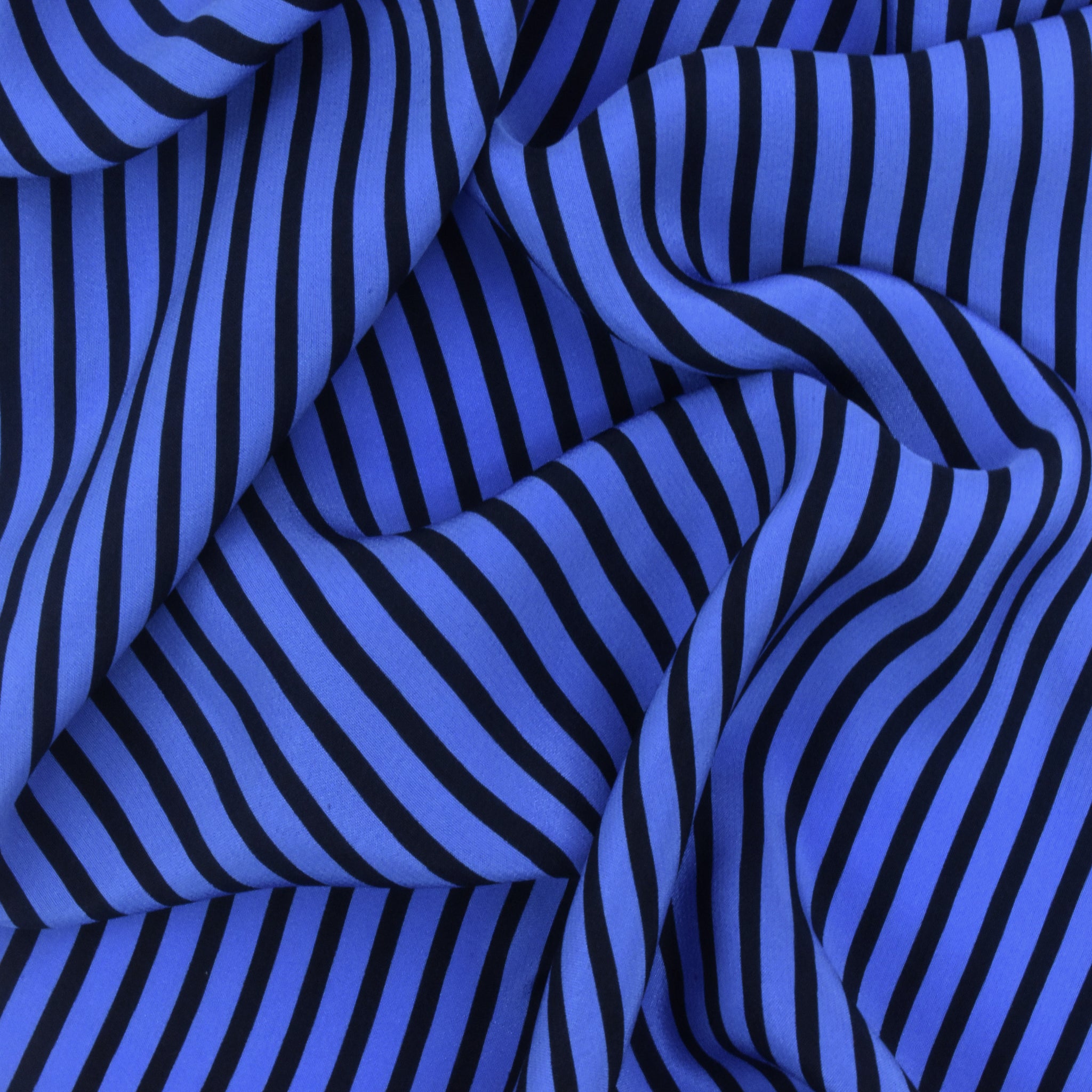 Nile Blue-Basic Black Stripe Printed Silk Faille Woven Fabric