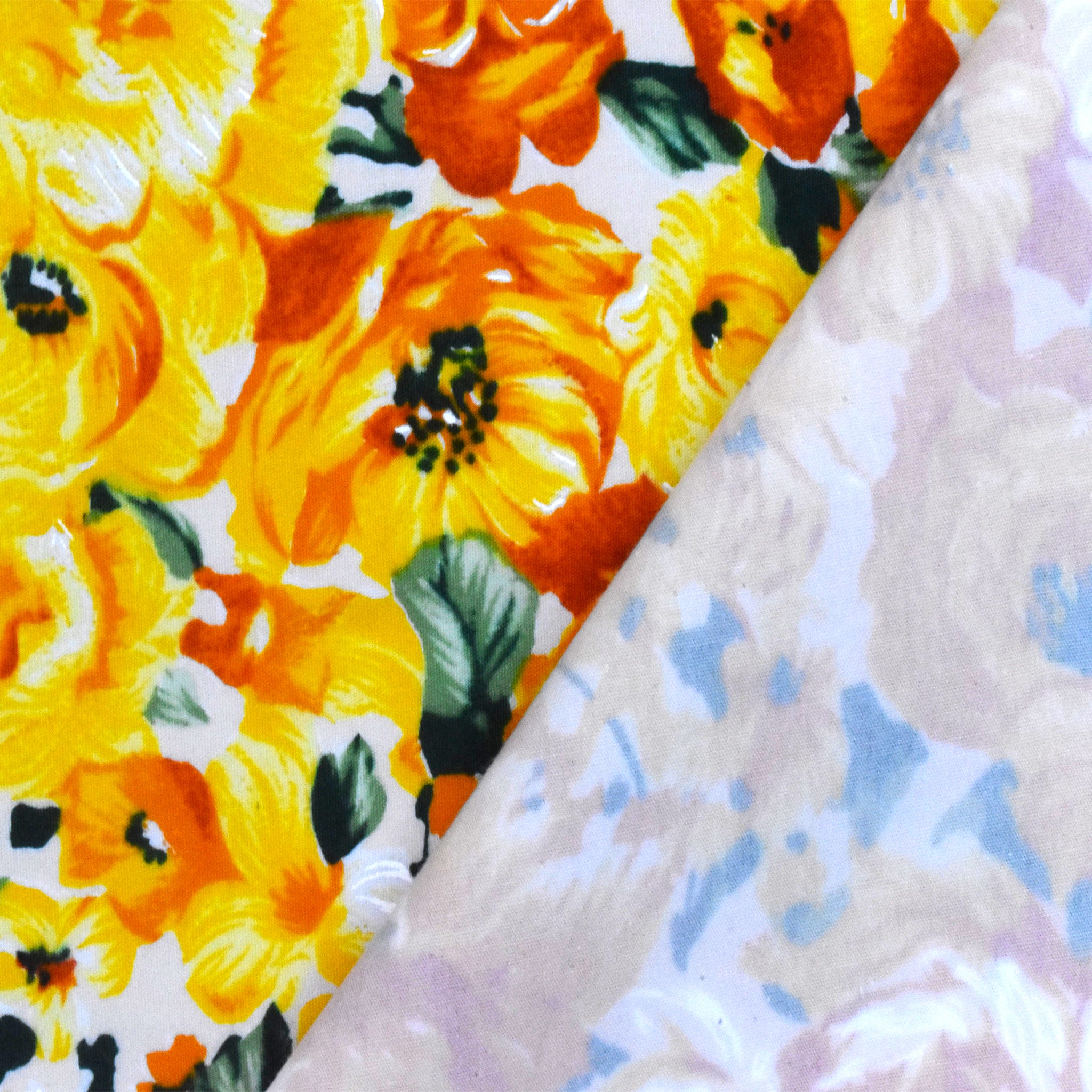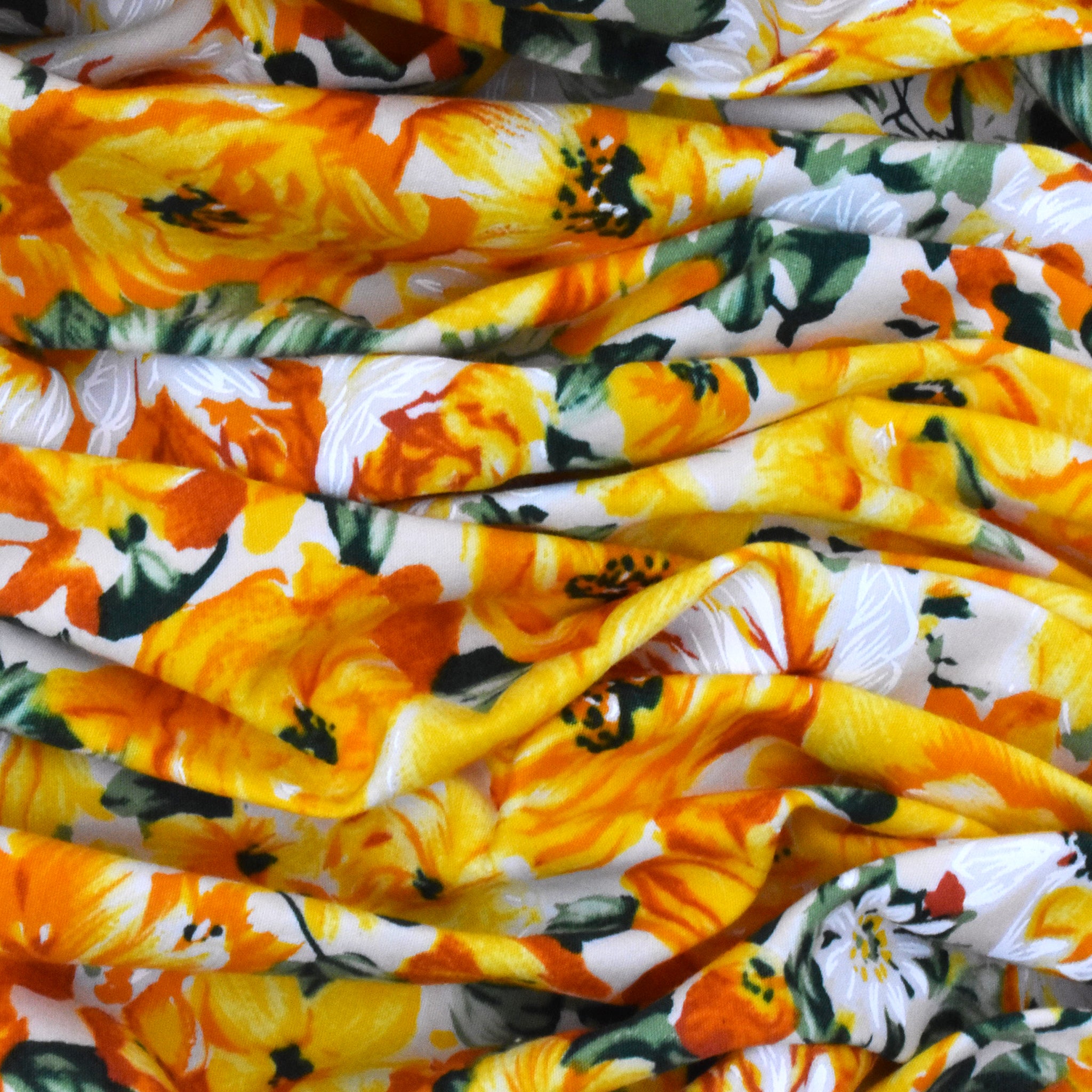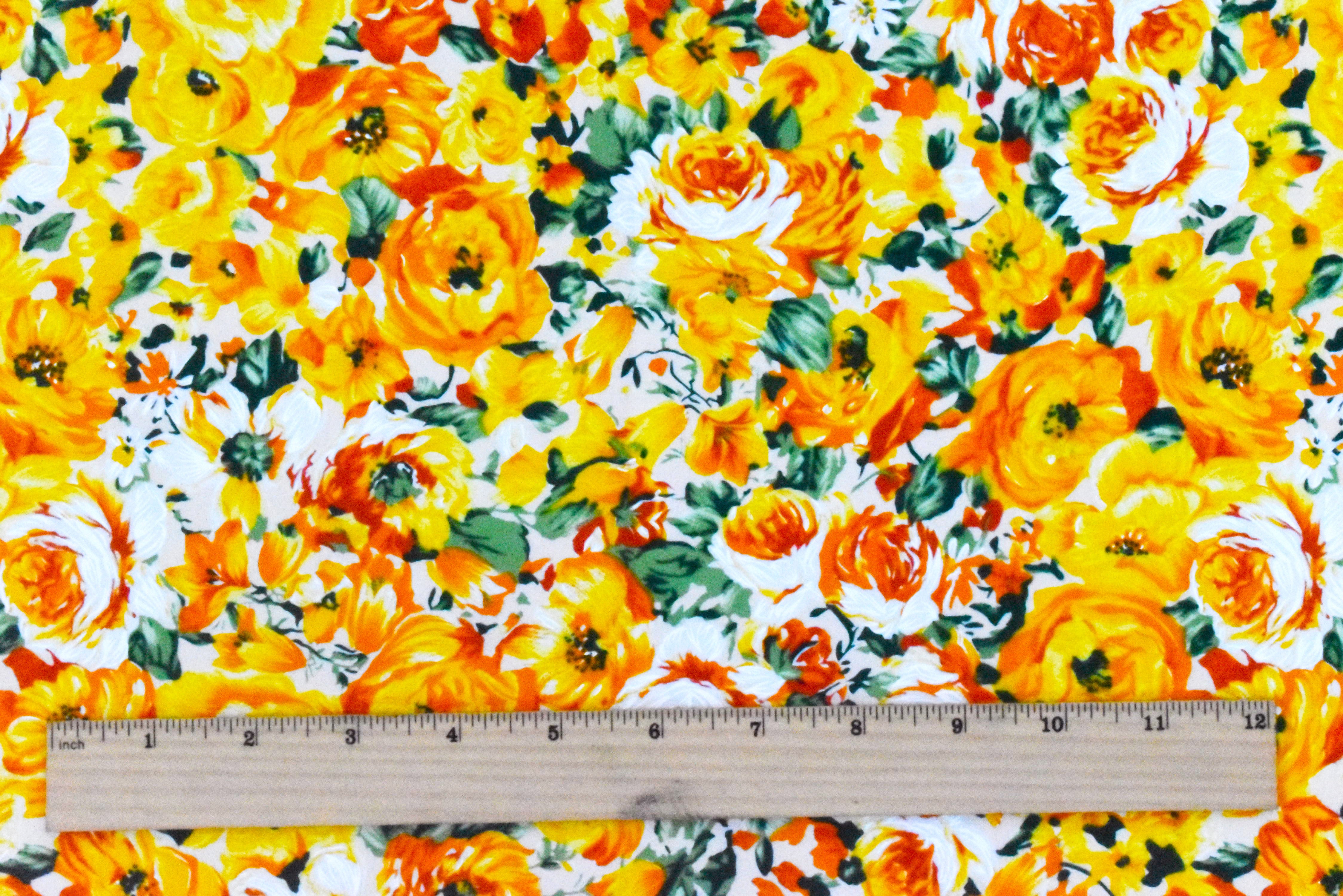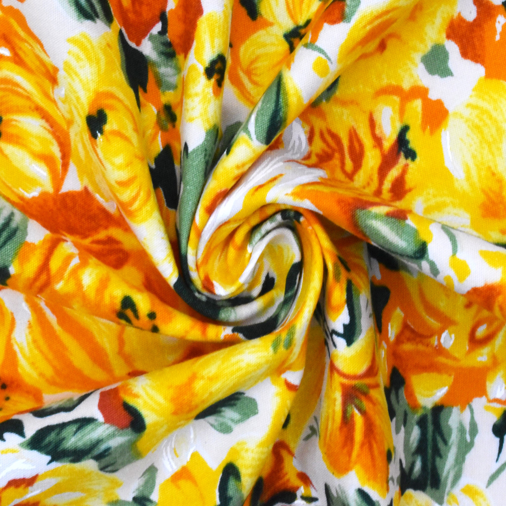 Orange-Yellow-Multi Floral Printed Cotton Poplin Woven Fabric