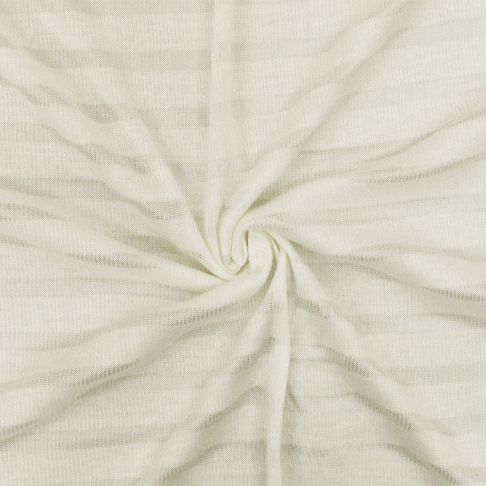 Pure Ivory-Ivory Stripe Stretch Cotton 2X2 Rib Knit Fabric