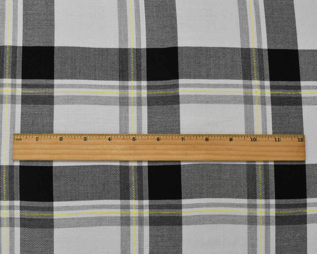 Black-White-Multi Cotton-Rayon Famous Maker Plaid Twill Woven Fabric