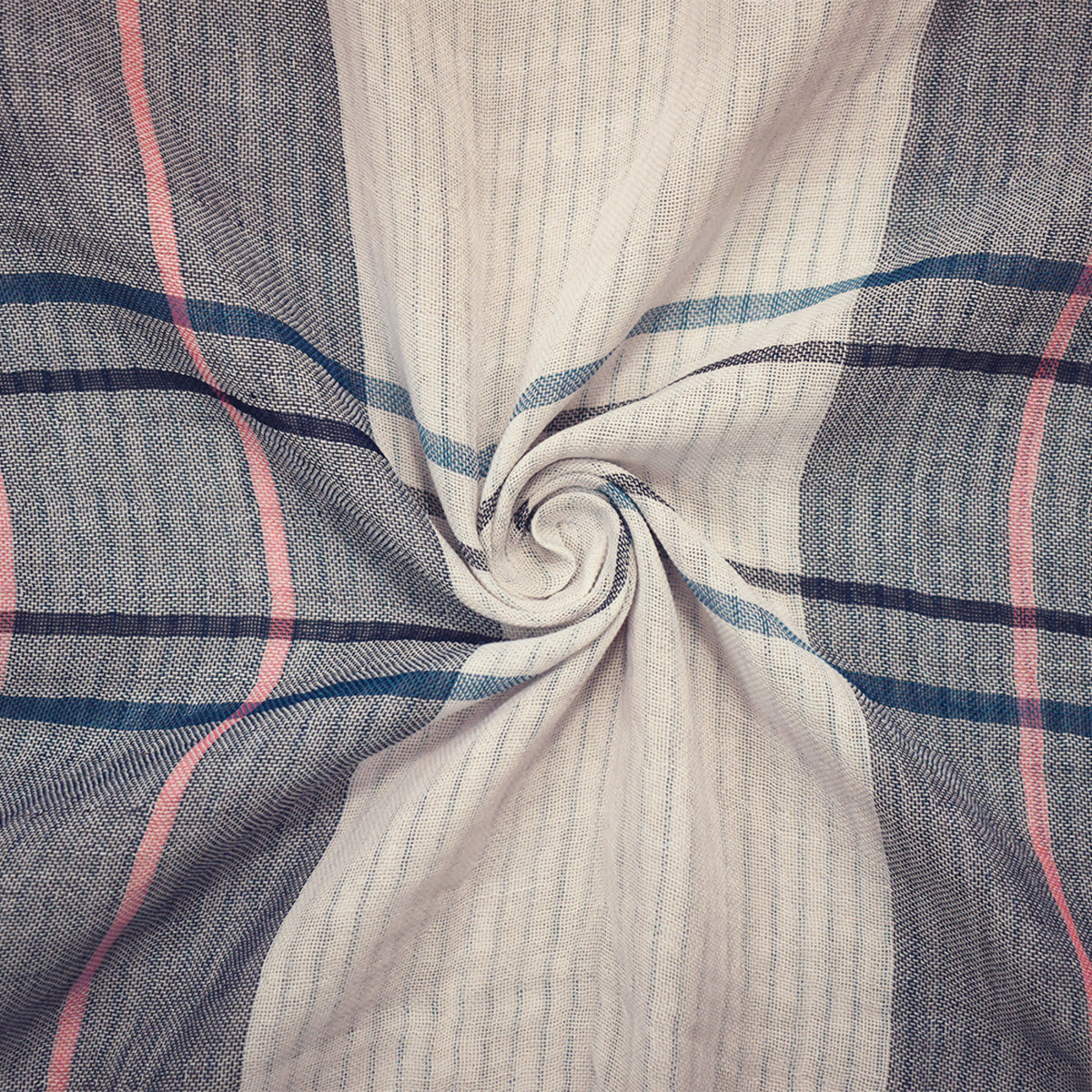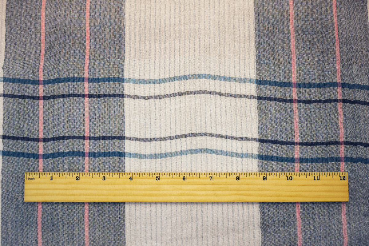 Blue-White-Multi Famous Maker Cotton Plaid Double Gauze Woven Fabric