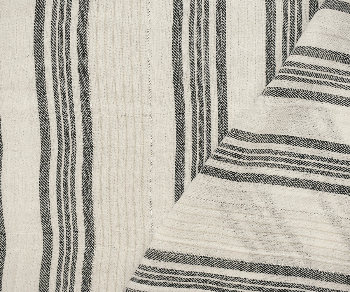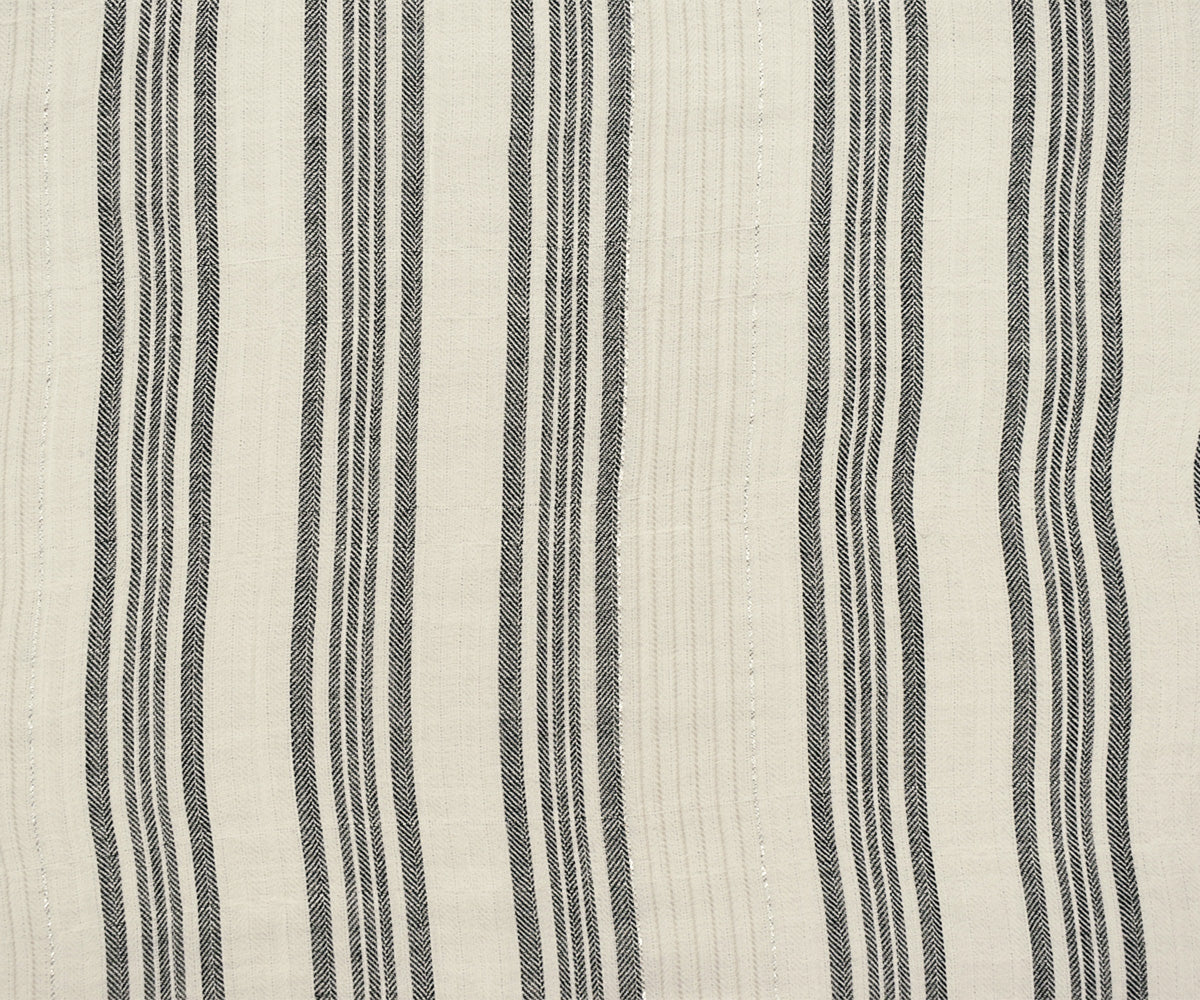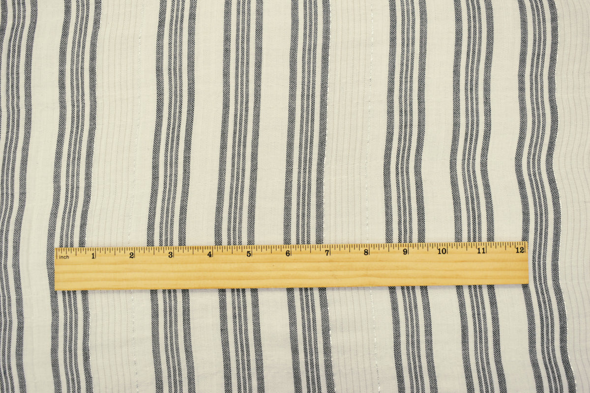 Ivory-Silver Metallic Famous Maker Cotton Striped Herringbone Woven Fabric
