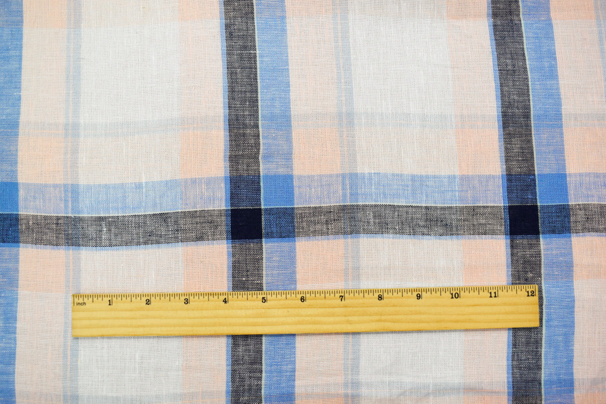 Light Blue-Pink-Multi Famous Maker Cotton Plaid Slub Gauze Woven Fabric