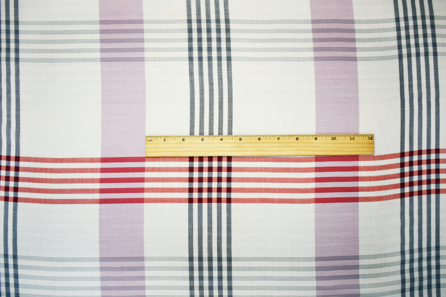 White-Red-Navy Cotton Famous Maker Plaid Gauze Woven Fabric