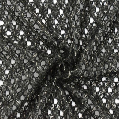 Black/Gold Sparkle Brushed Crochet/Mesh Knit Sweater Fabric