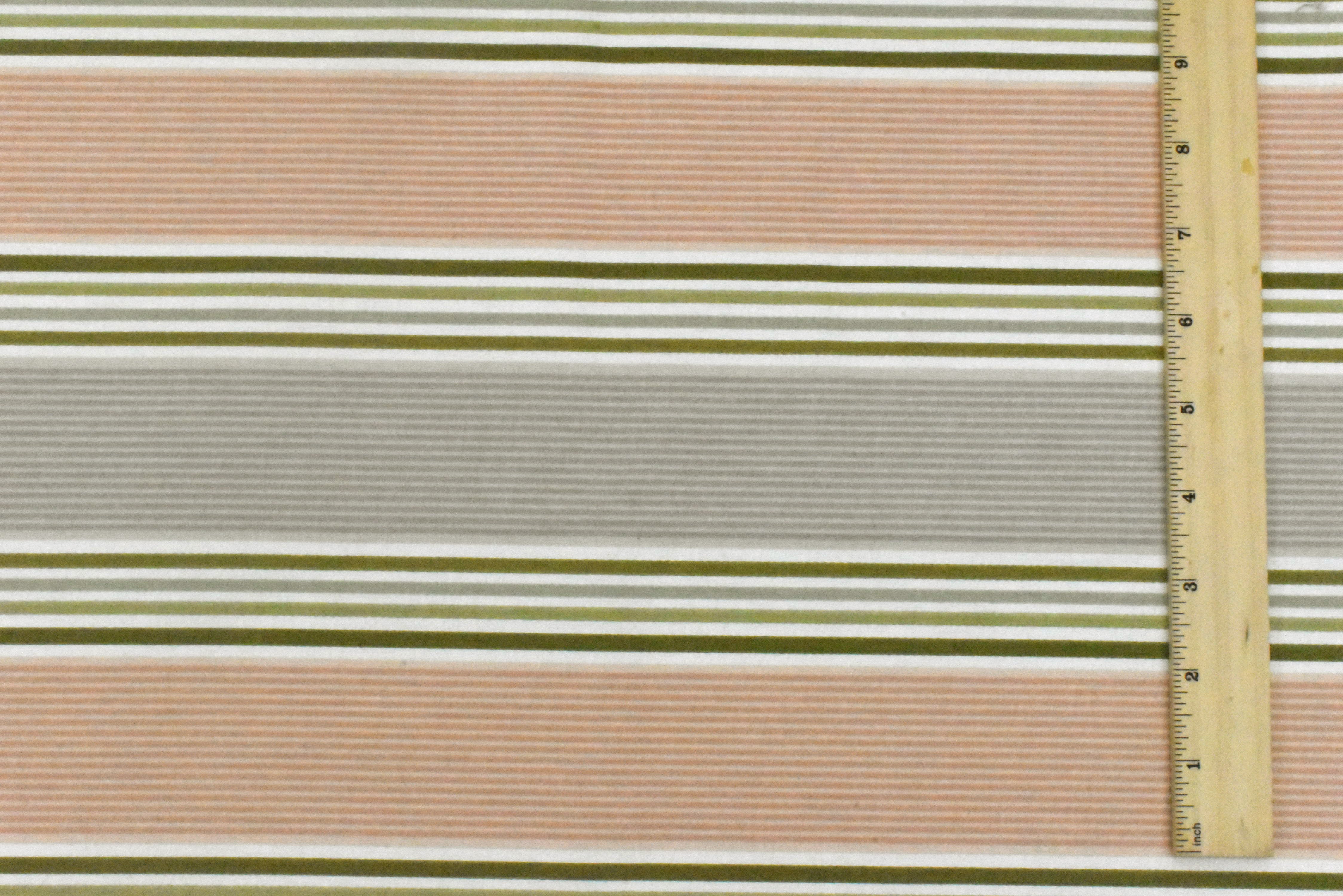 Gray-Faded Peach-Multi Waverly Stripe Printed Twill Decorating Fabric