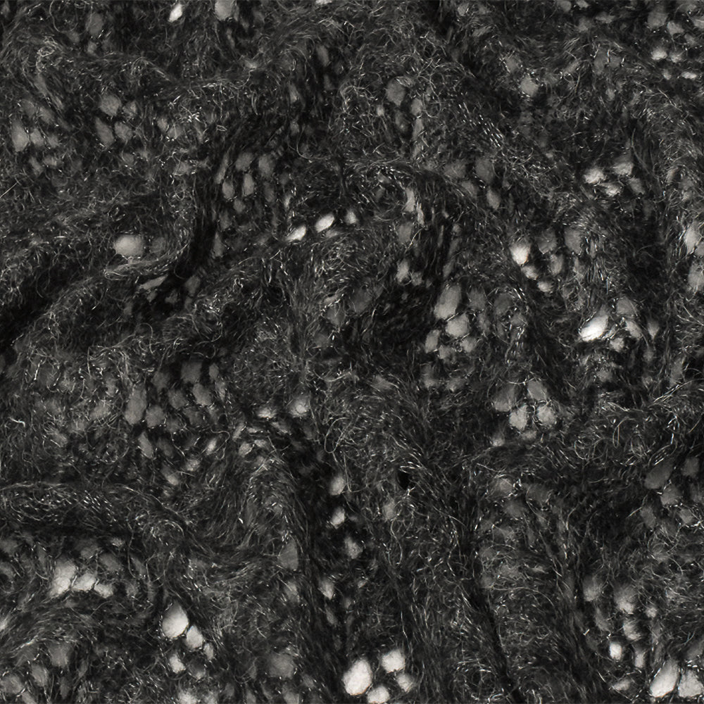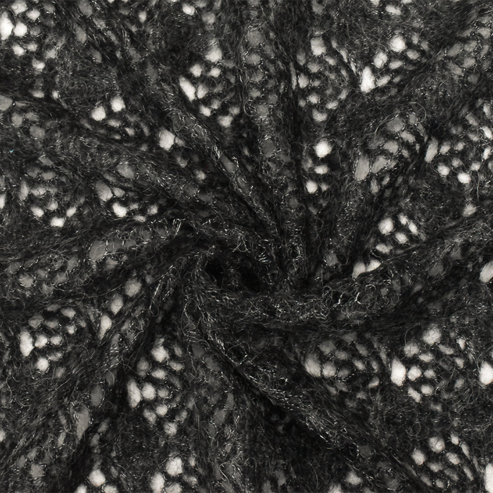 Ash Gray-Black Texture Polyester Wool Raschel Crochet Knit Fabric