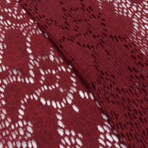 Berry Red Wool Blend Crochet Floral Sweater Knit Fabric