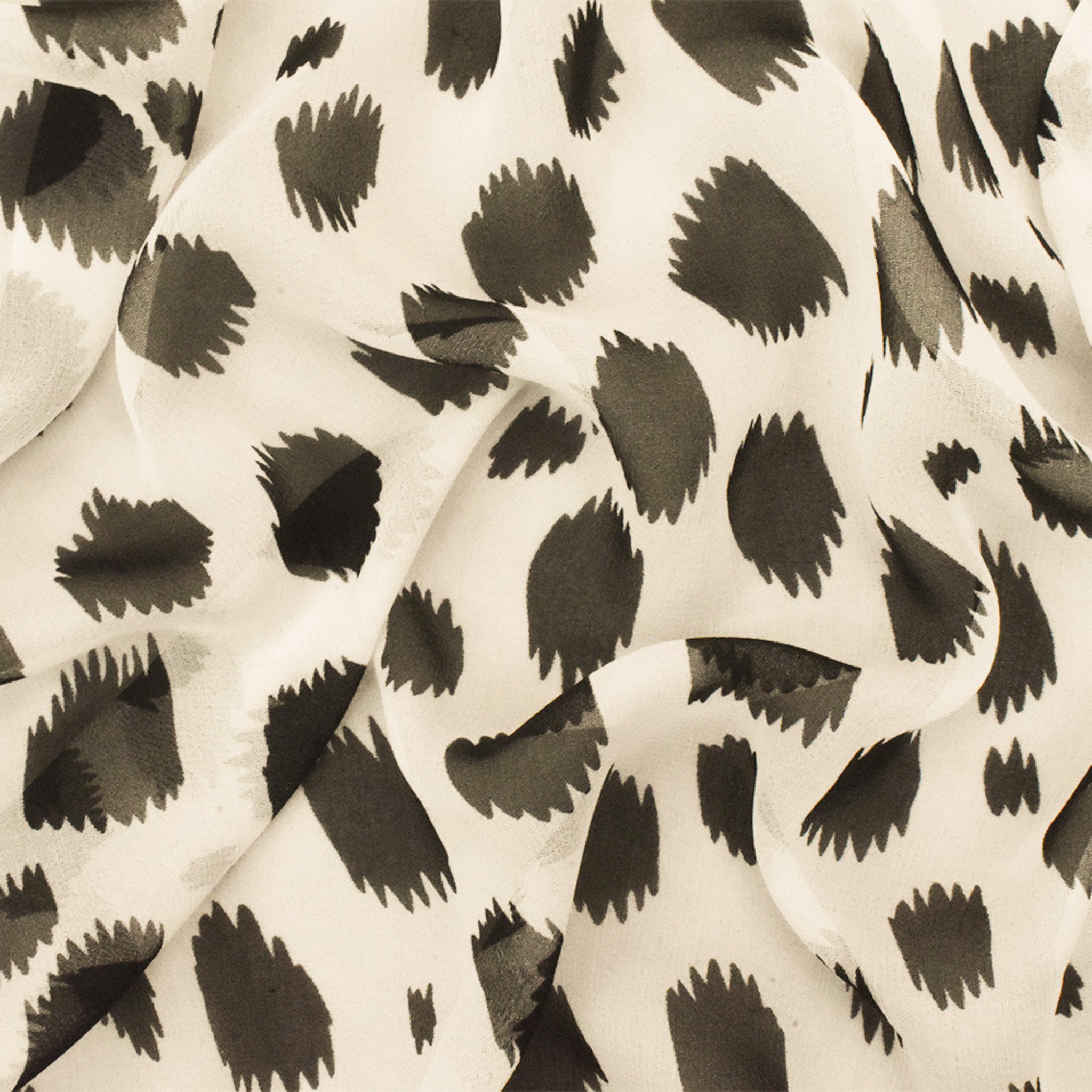 Black-Ivory Famous Designer Silk Spots Printed Chiffon Fabric