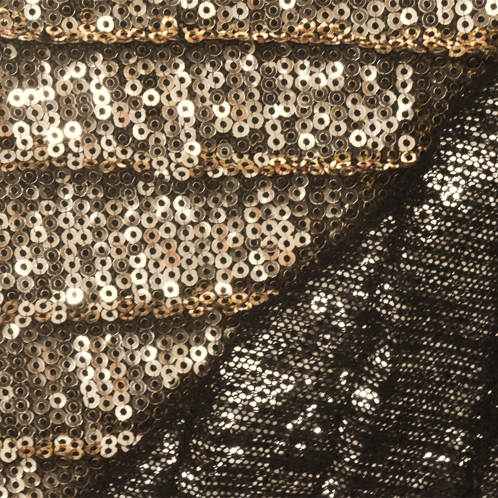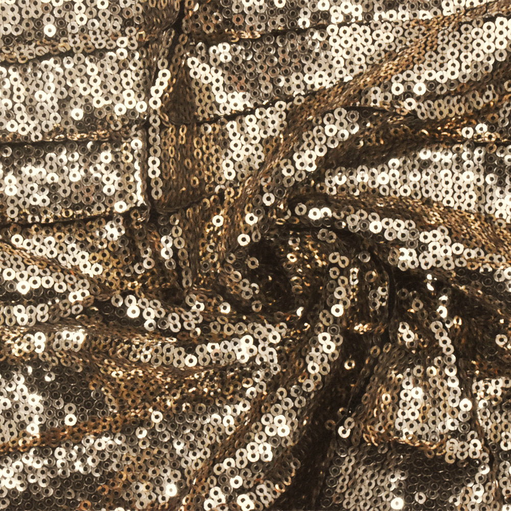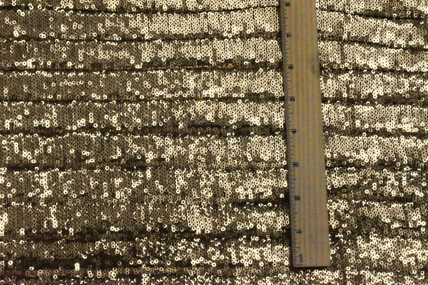 Gold-Black Fully Sequined Pleated Mesh Knit Fabric