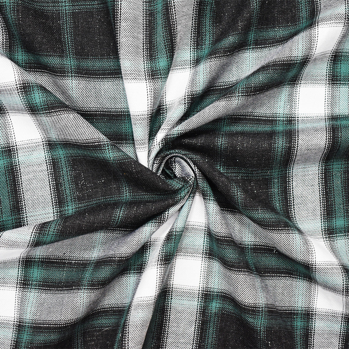 Green-Black-Silver Sparkle Famous Maker Cotton Plaid Twill Woven Fabric