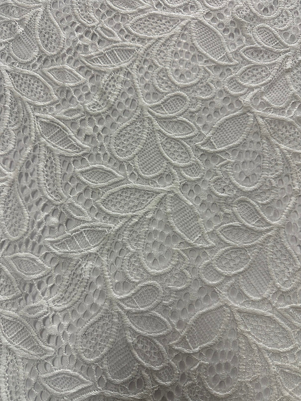 Off White Leaf Stretch Lace Fabric