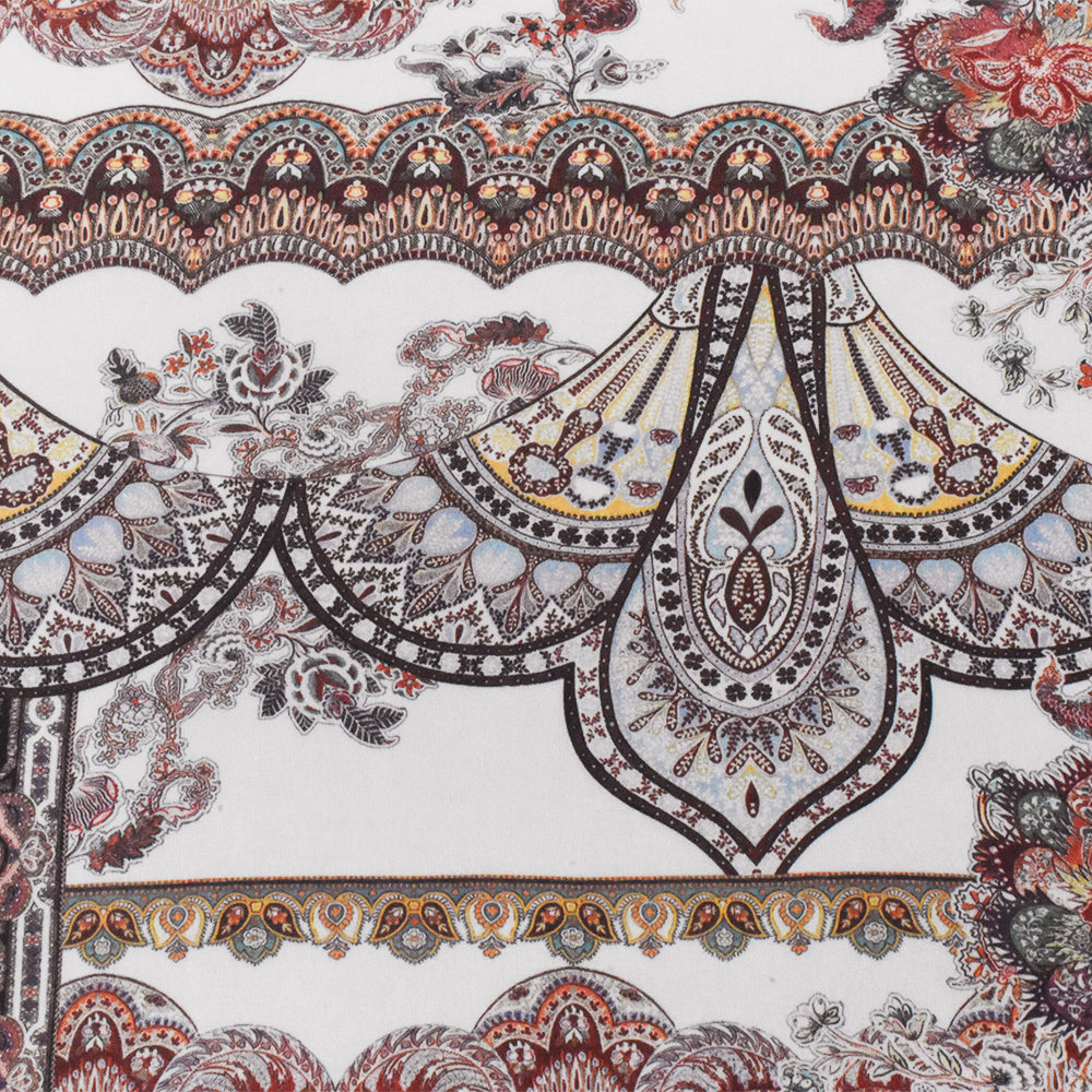-100% viscose famous designer chiffon fabric printed with paisley and bordered inspired elements