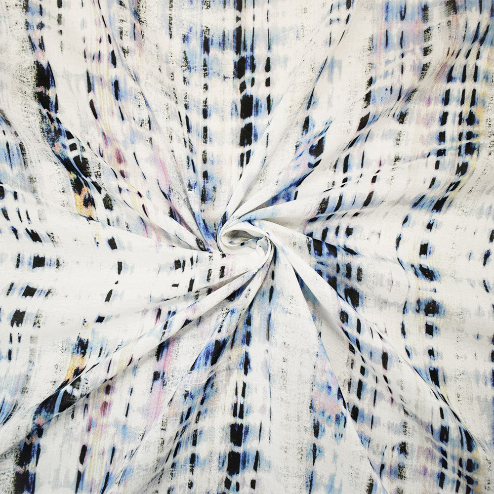 White-Blue-Multi Cotton Famous Maker Abstract Printed Batiste Woven Fabric