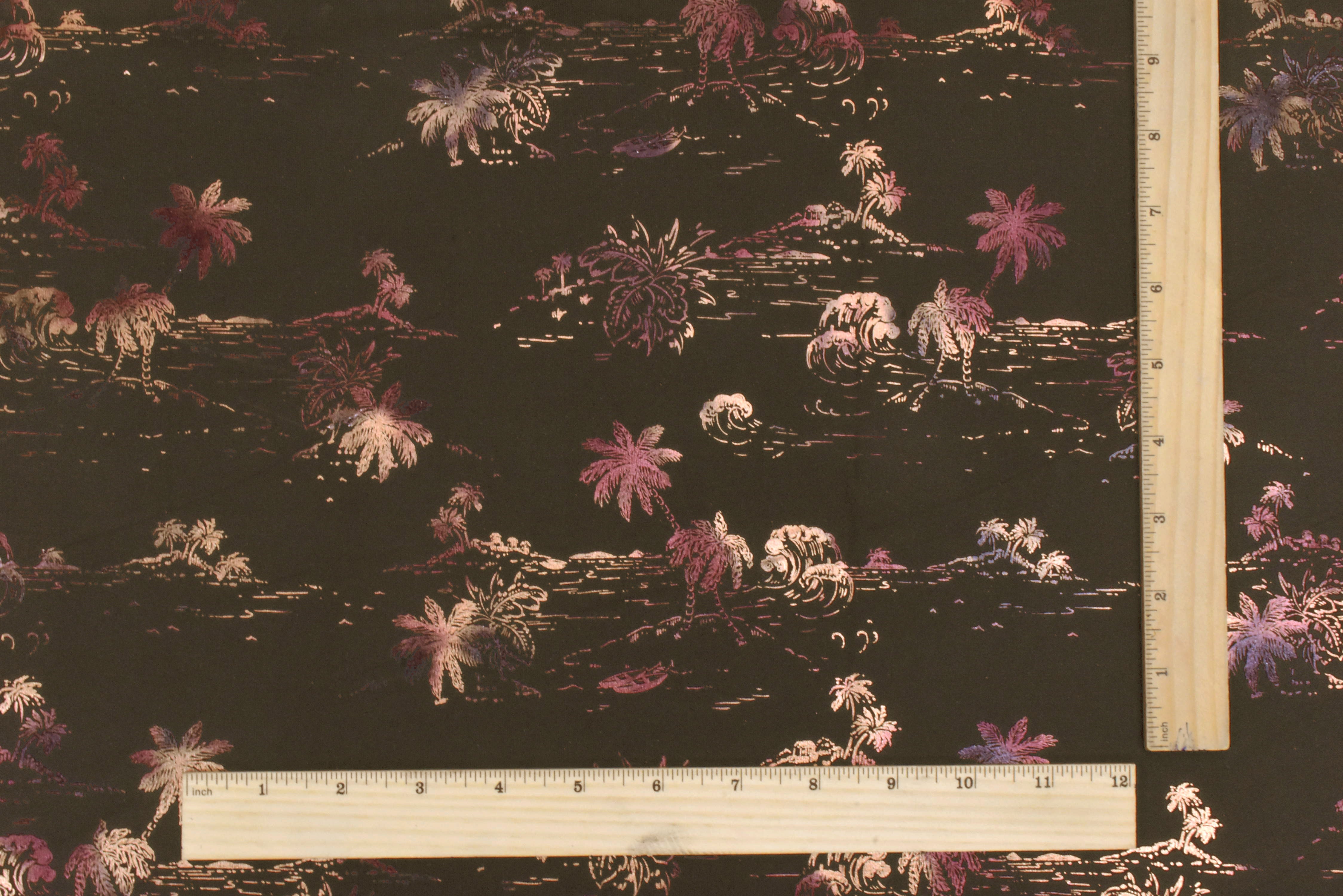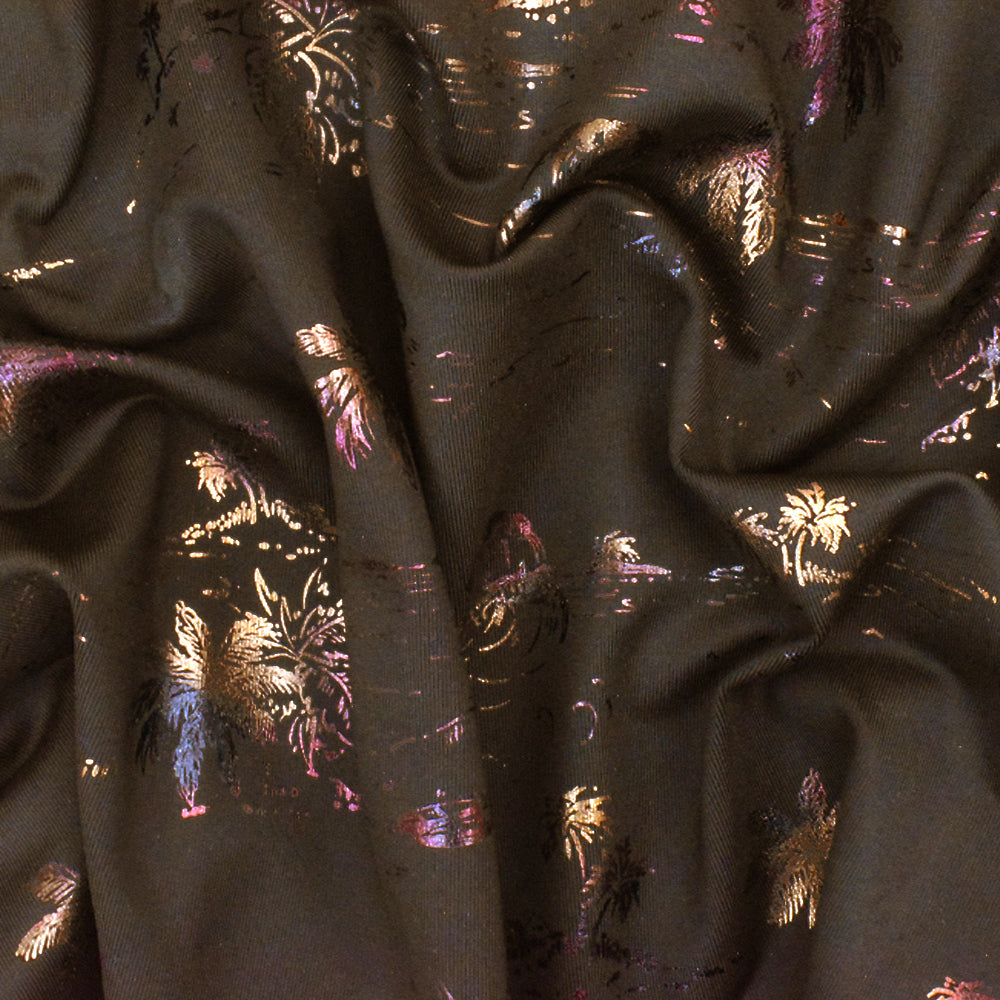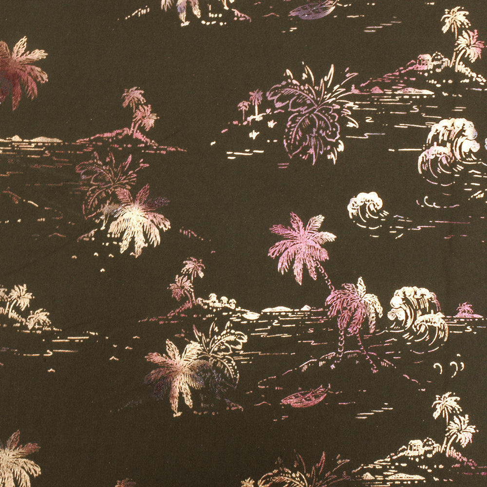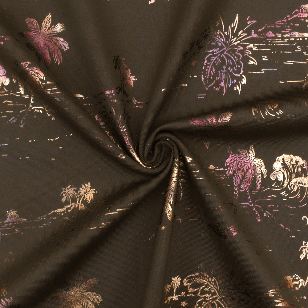 Brown-Multi Famous Maker Beach Print Stretch Tricot Swimwear Knit Fabric