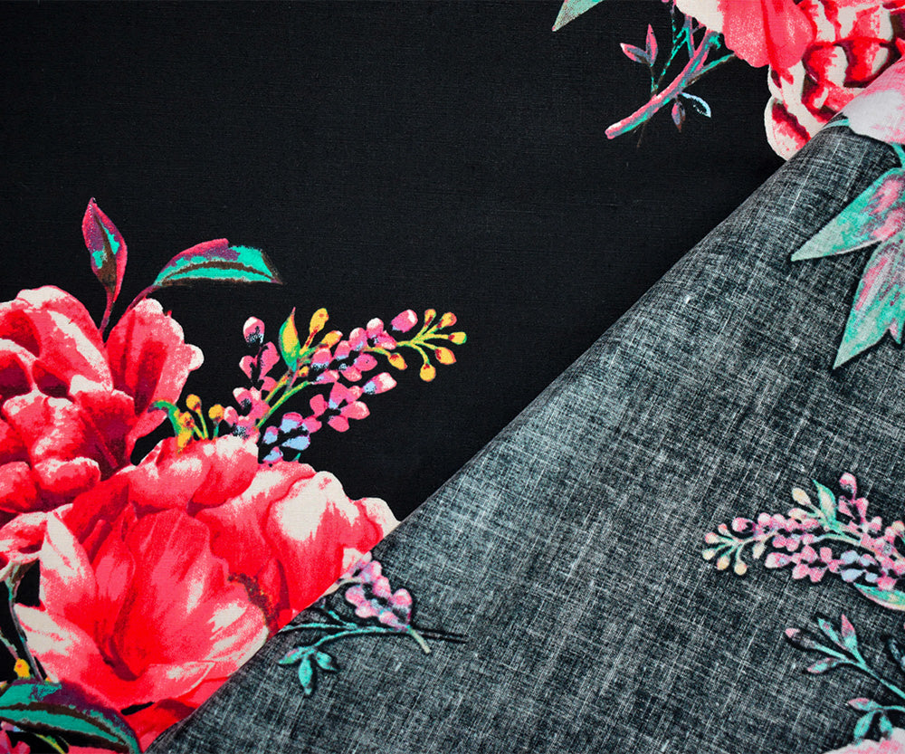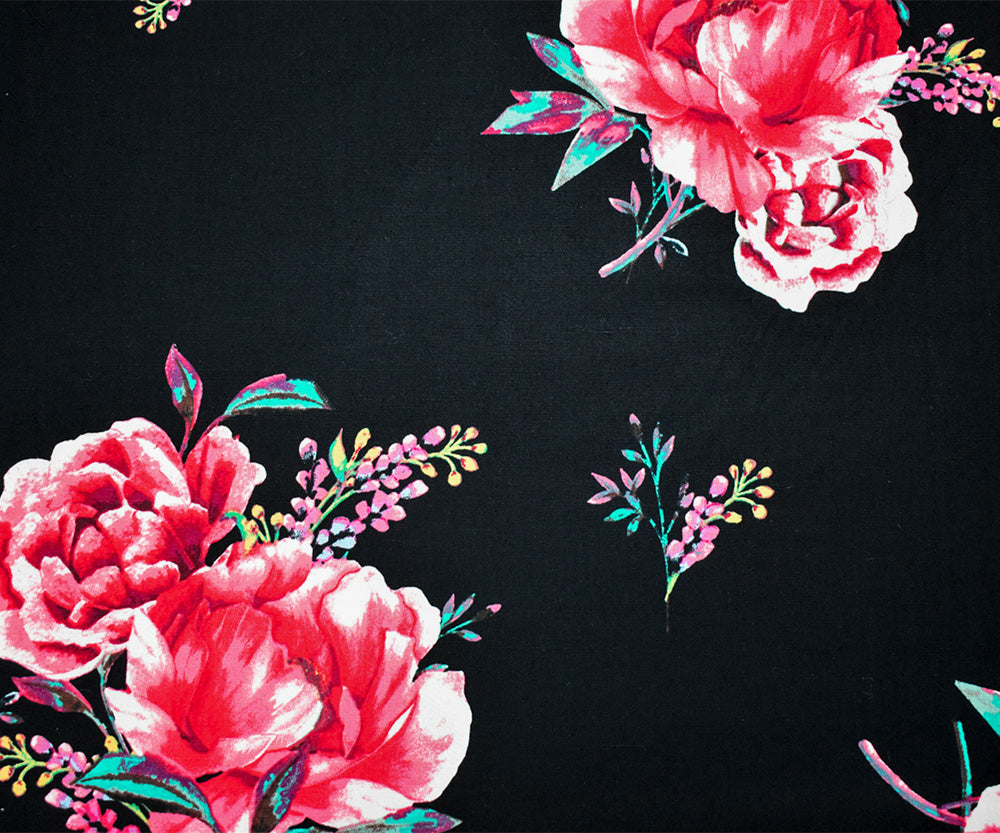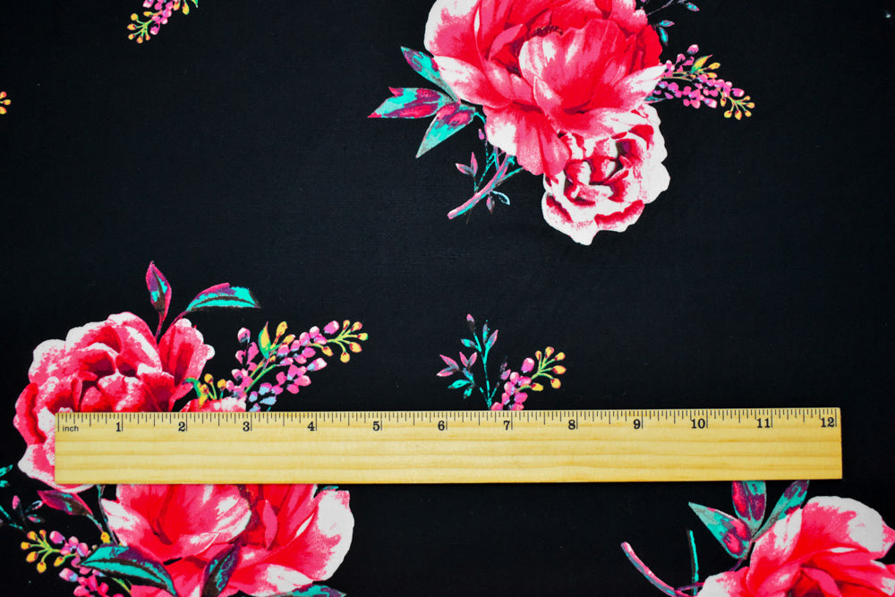 Black-Pink-Teal Cotton Floral Print Stretch Spandex Poplin Woven Fabric