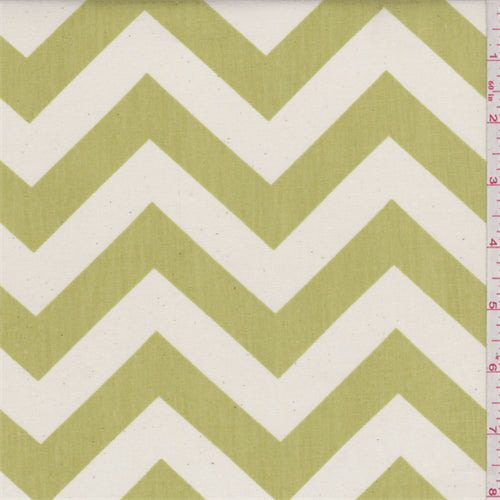 "Zig Zag" print by Premier Prints. A chartreuse green and ivory horizontal chevron print. This lightweight 7 oz cotton poplin has a smooth surface and crisp hand.