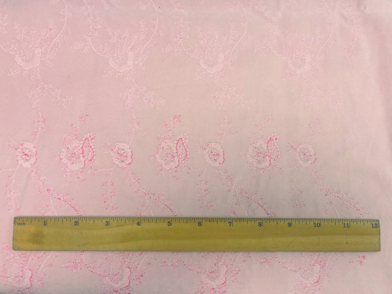 Pastel Pink Cotton Floral Embroidered Velveteen Woven Fabric