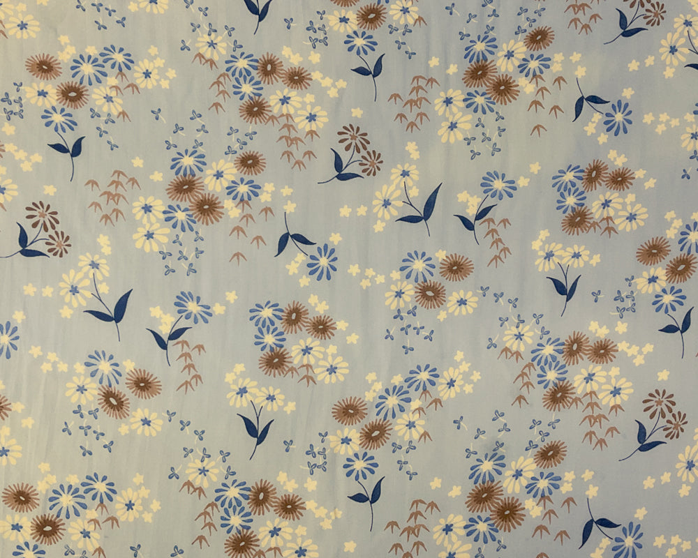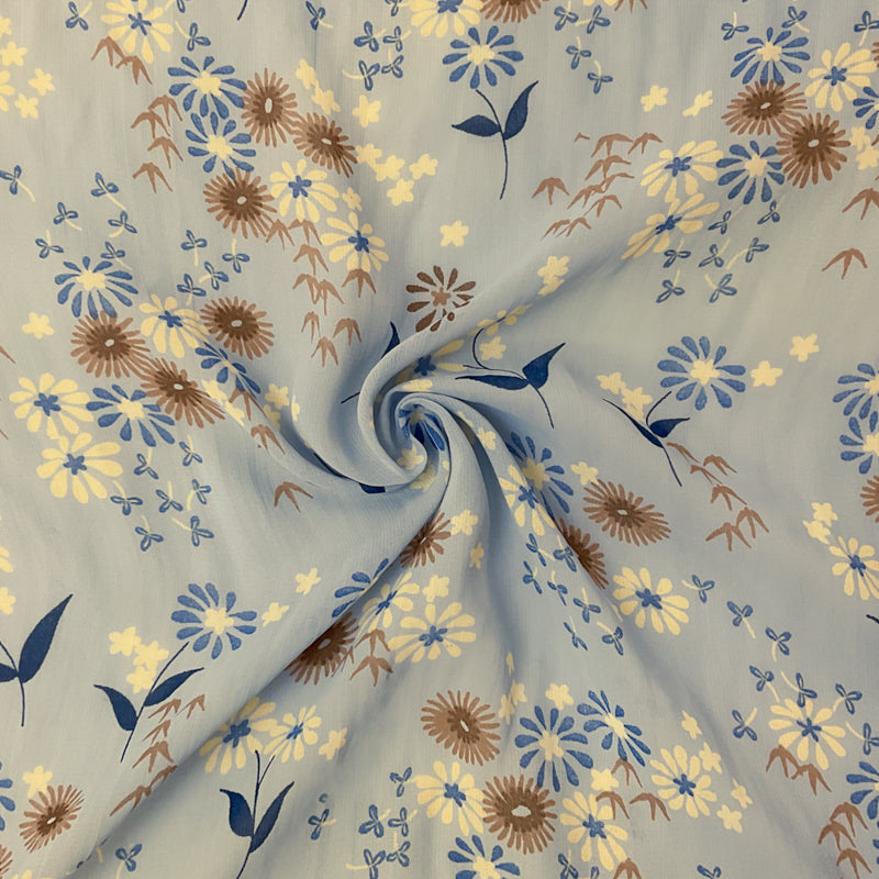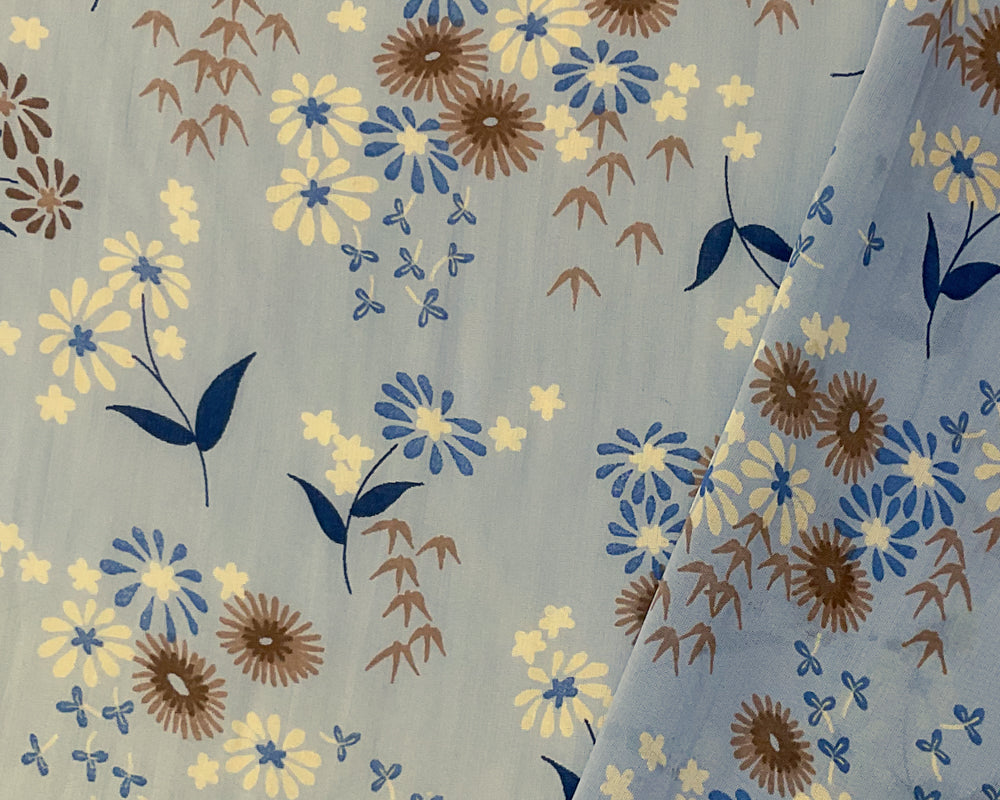 Blue-Yellow-Brown Cotton Floral Printed Voile Woven Fabric