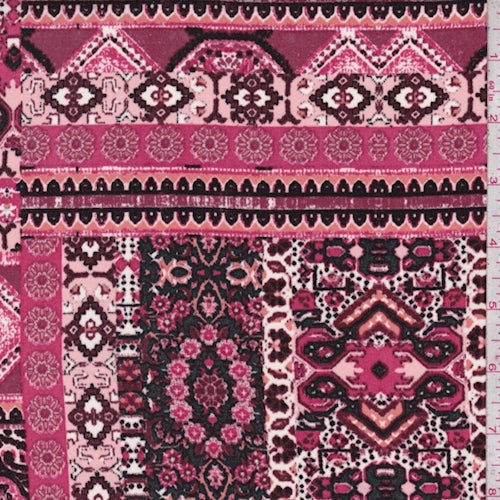 Berry/Coral/Black Patchwork Crepe De Chine Fabric