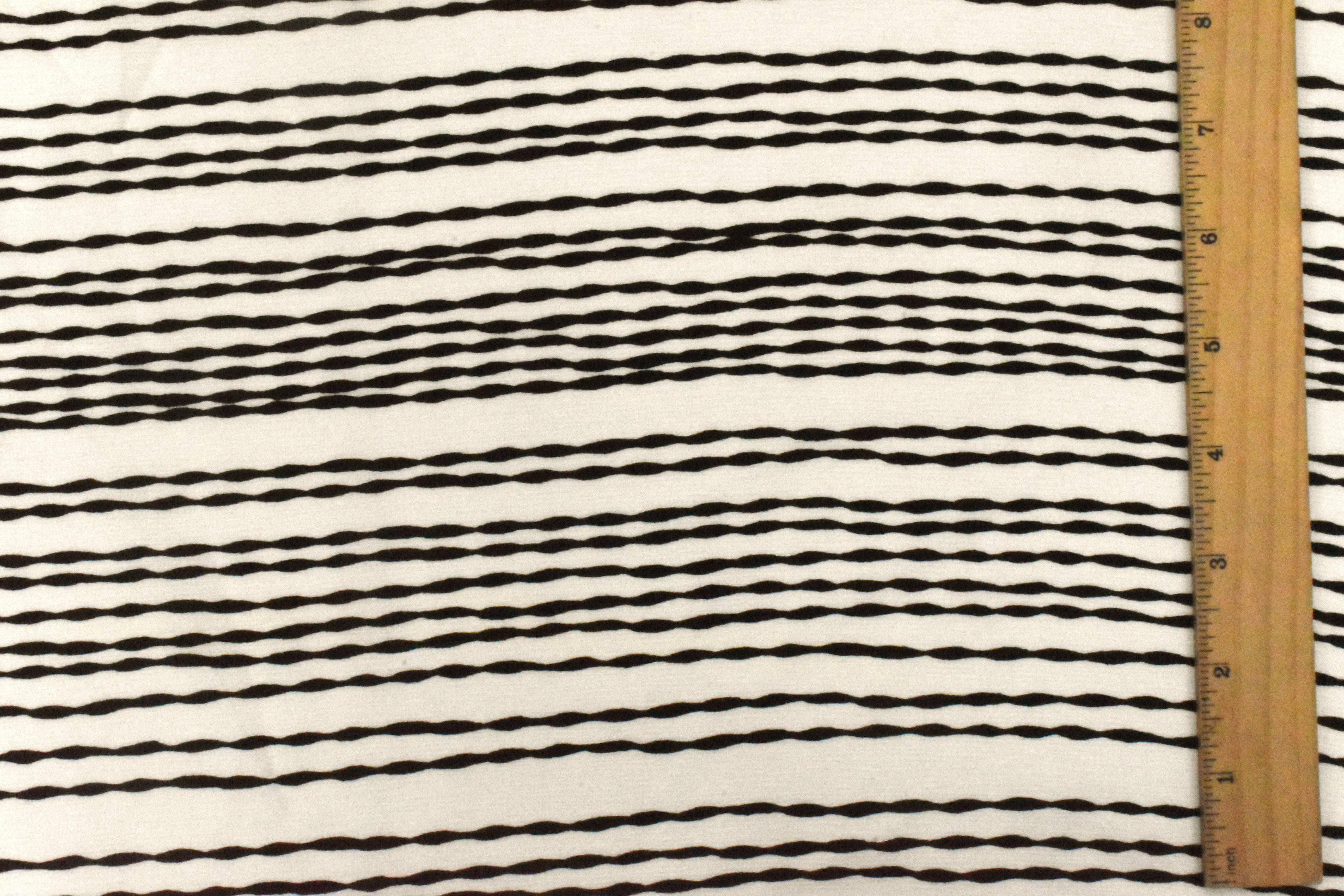 Ivory-Black Bump Stripe Printed Striated Texture Crepe Fabric