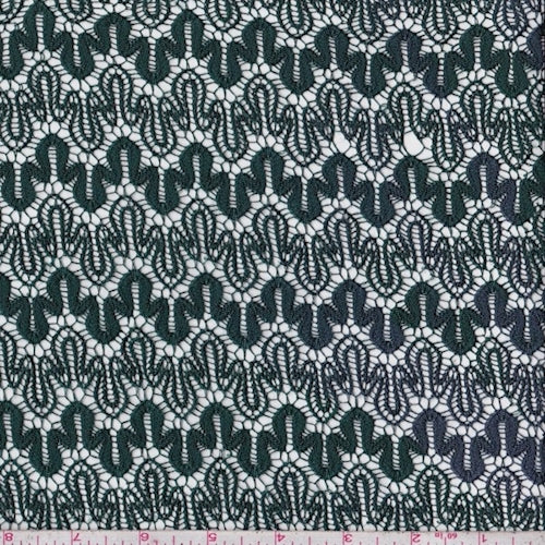 -Crocheted nylon lace with a squiggle design and metallic silver thread accents