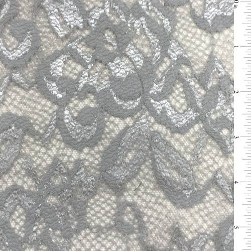 Mix of Matte & Shiny Silver Gray Sheer Stretch Lace Fabric