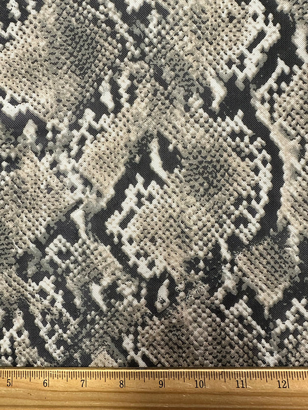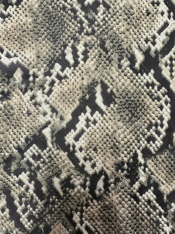 -Beige, Black, & White Multi Snakeskin Print Stretch Mesh Fabric