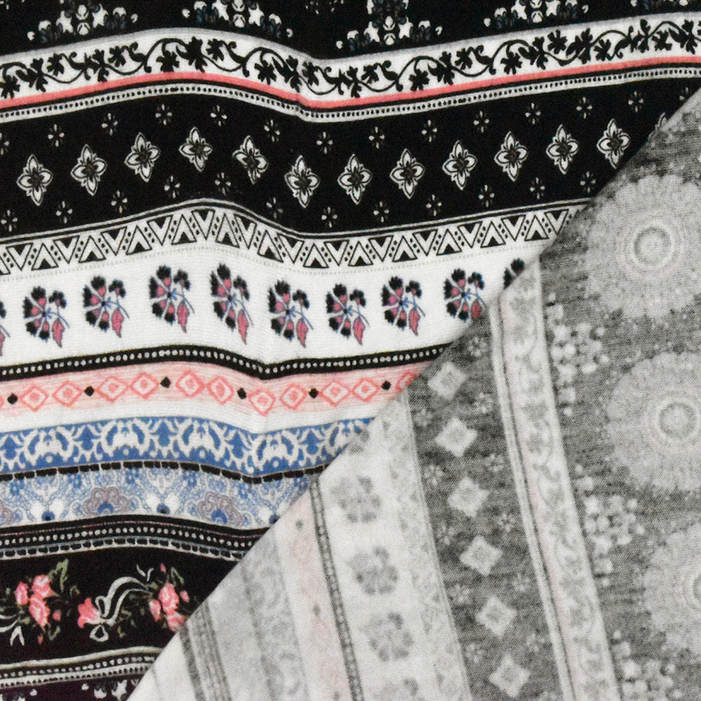 -Low luster Moroccan and floral stripe printed pattern stretch jersey knit fabric