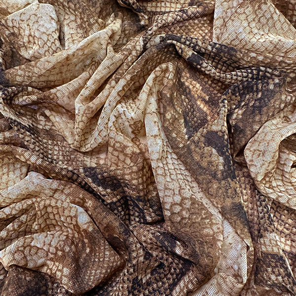 Brown Multi Snakeskin Print Stretch Mesh Fabric