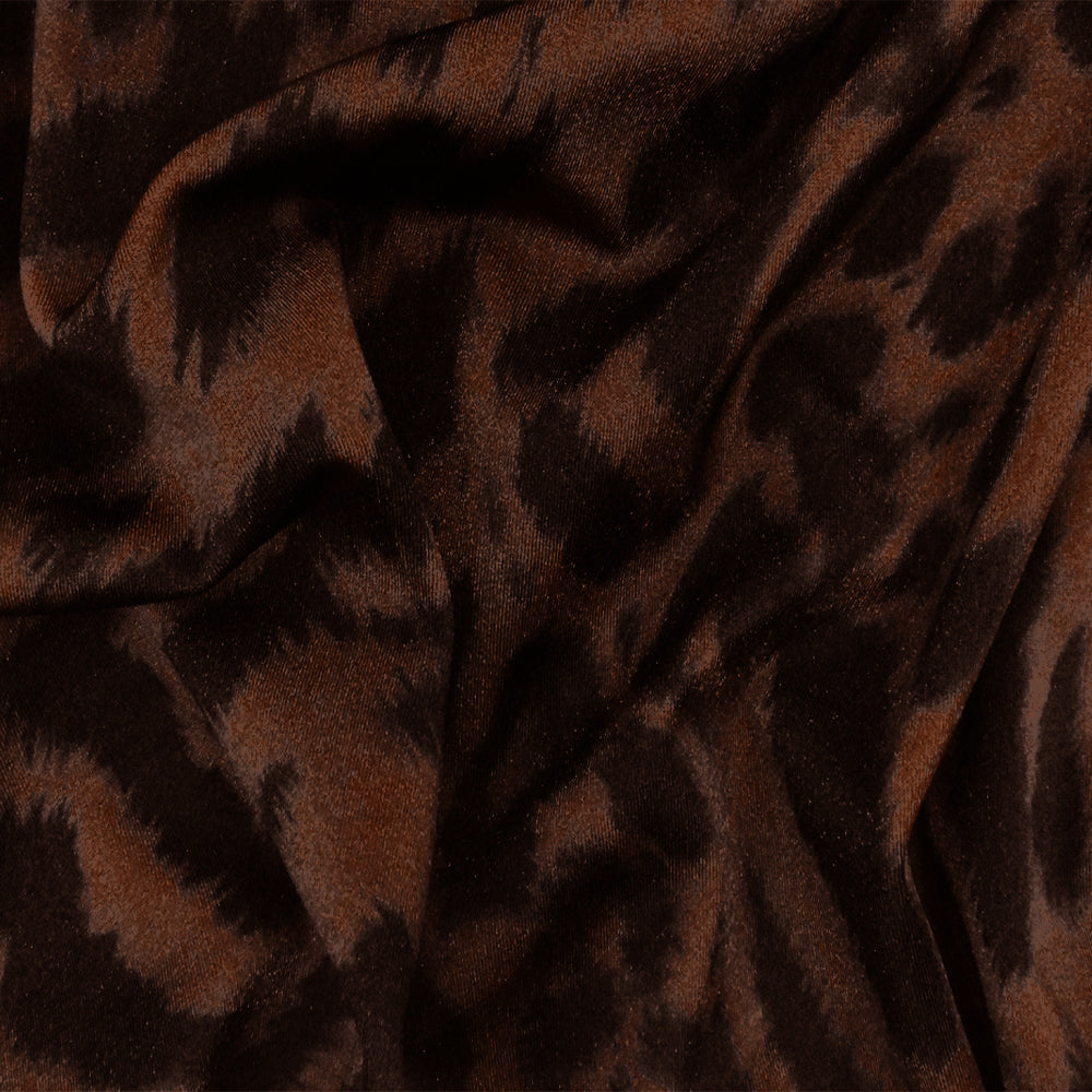 -220 GSM, lustrous leopard printed satin-like tricot swimwear knit from a famous activewear company, made in Brazil