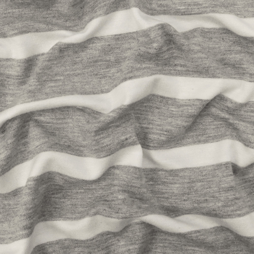 Heather Gray-Ivory Stripe Stretch Spandex Rayon Modal Jersey Knit Fabric