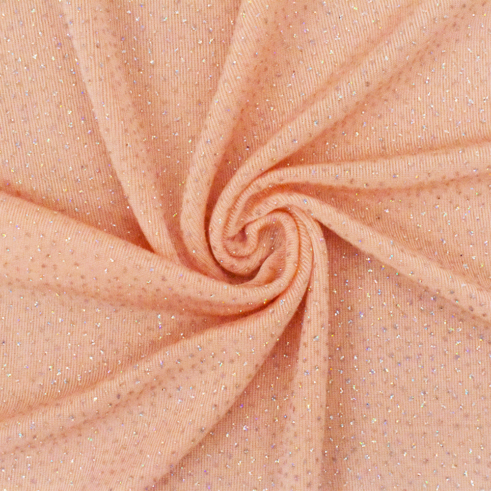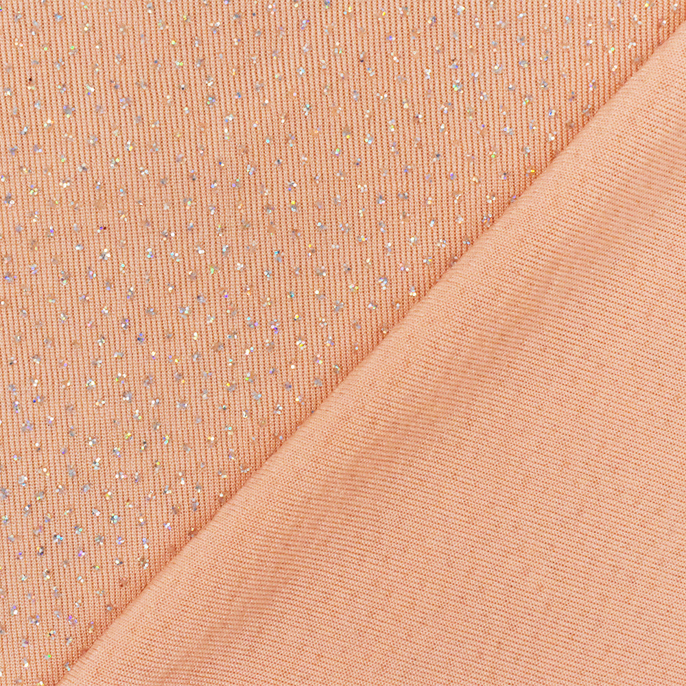 Peach Orange-Silver Sparkly Metallic Printed Stretch Slinky Knit Fabric