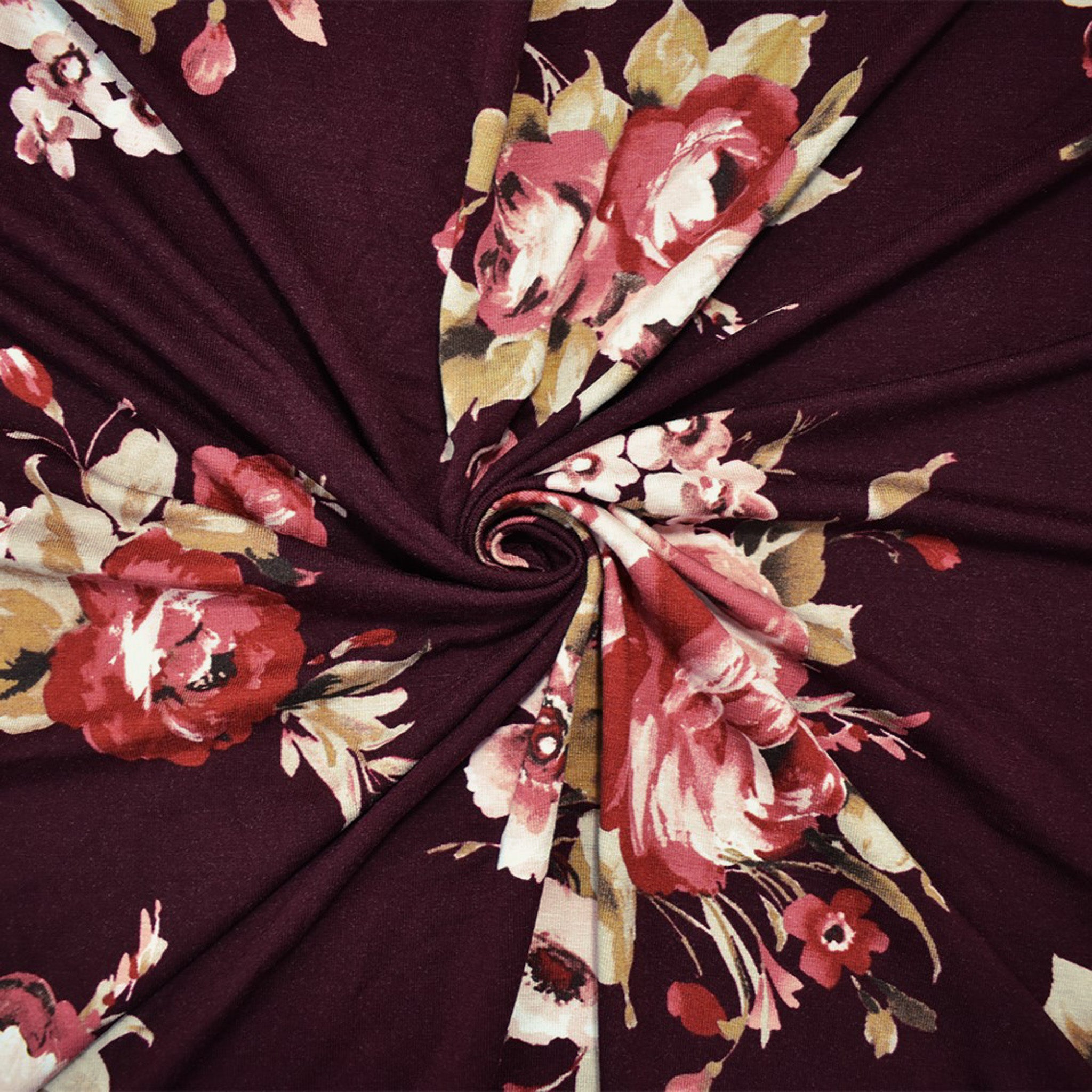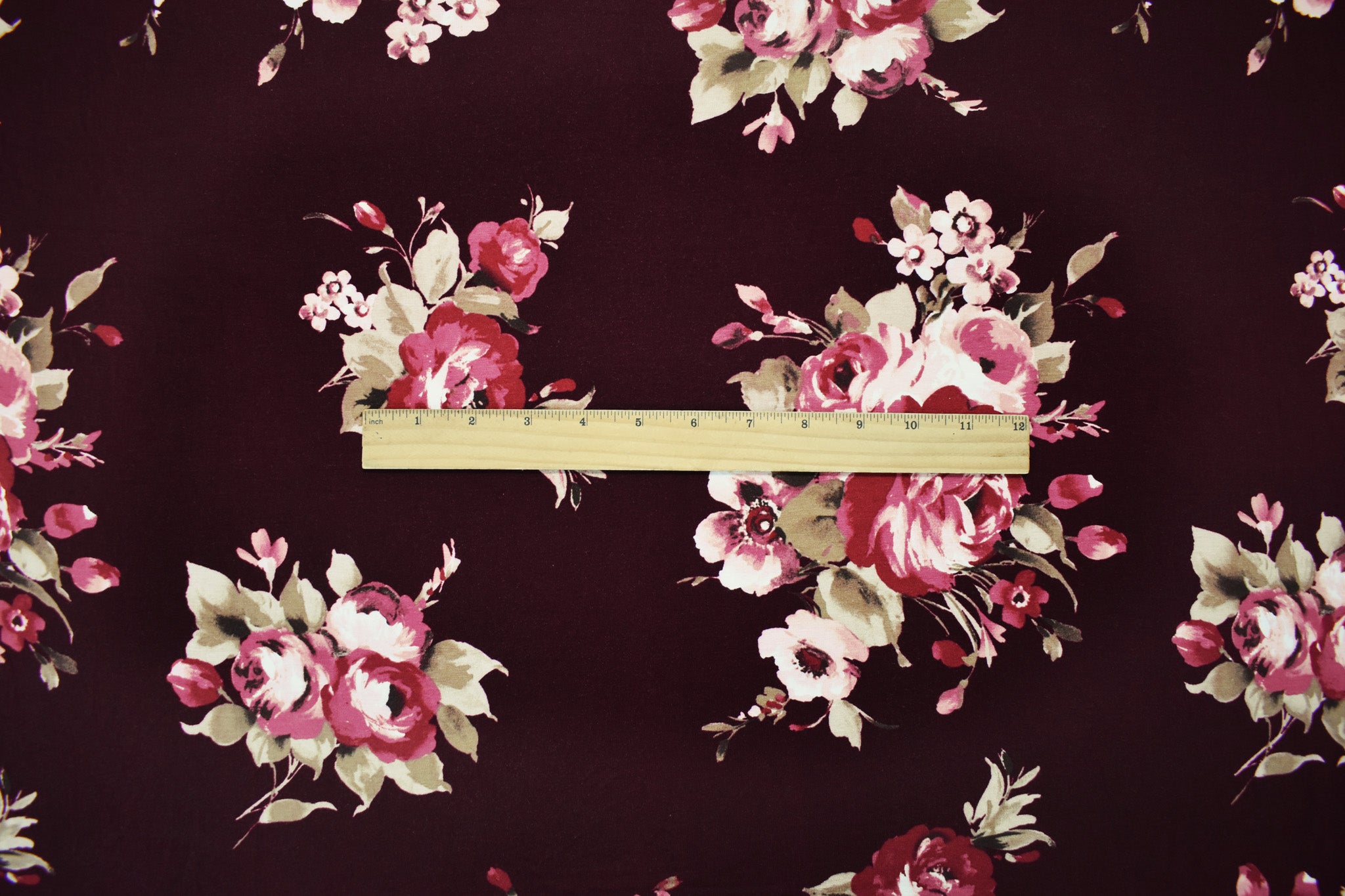 Purple-Multi Rayon Stretch Spandex Floral Printed Jersey Knit Fabric