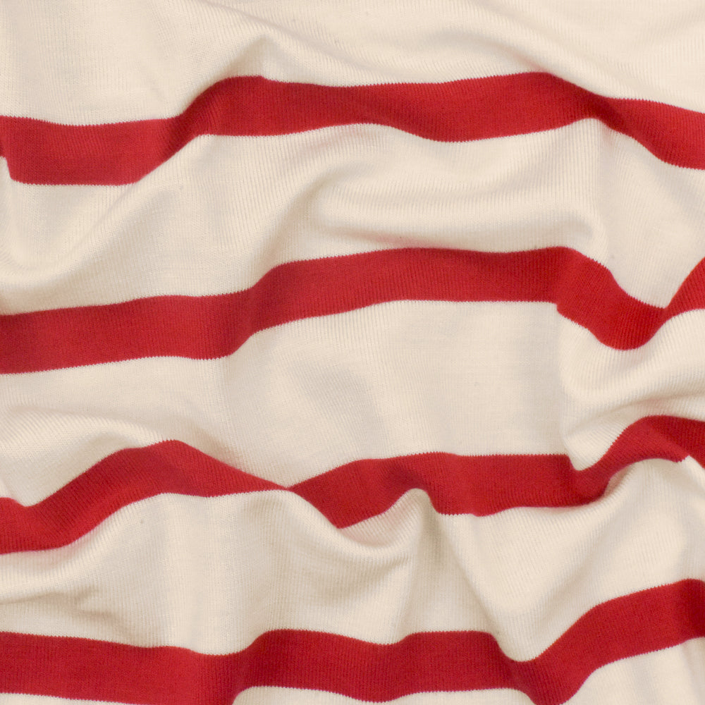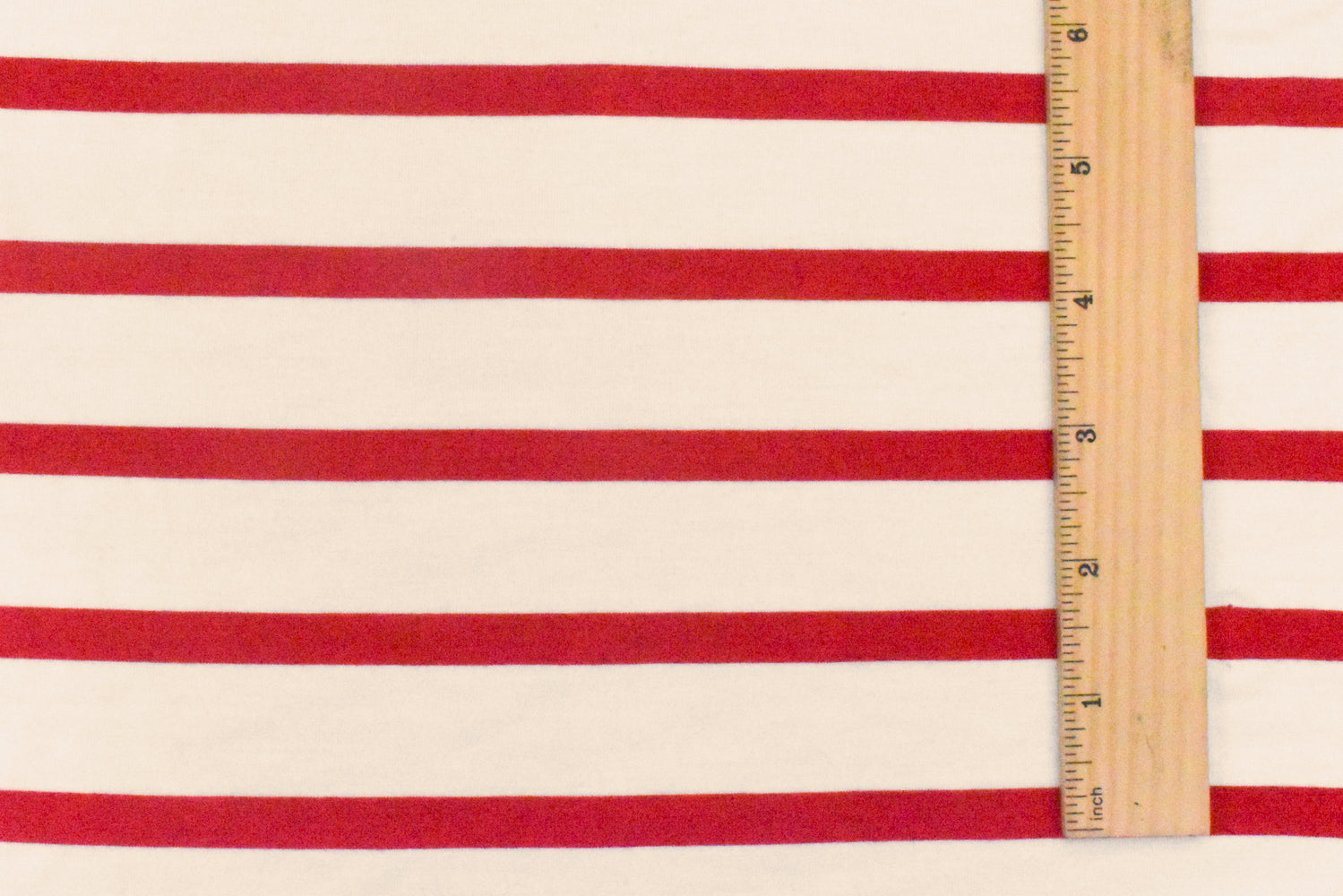 Red-Ivory Stripe Stretch Spandex Rayon Modal Jersey Knit Fabric