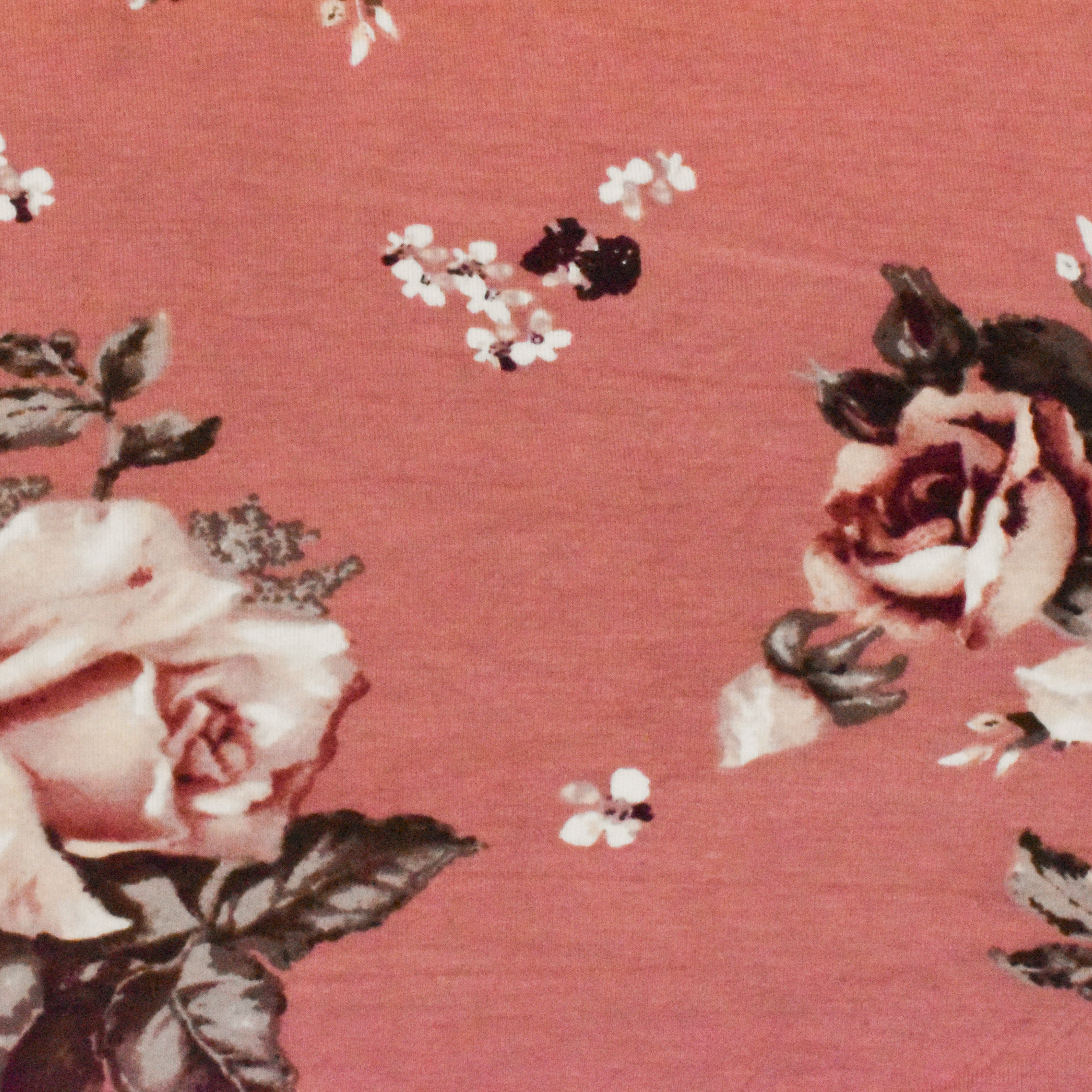 Rosy Pink-Brown-Multi Floral Printed Stretch Rayon Jersey Knit Fabric