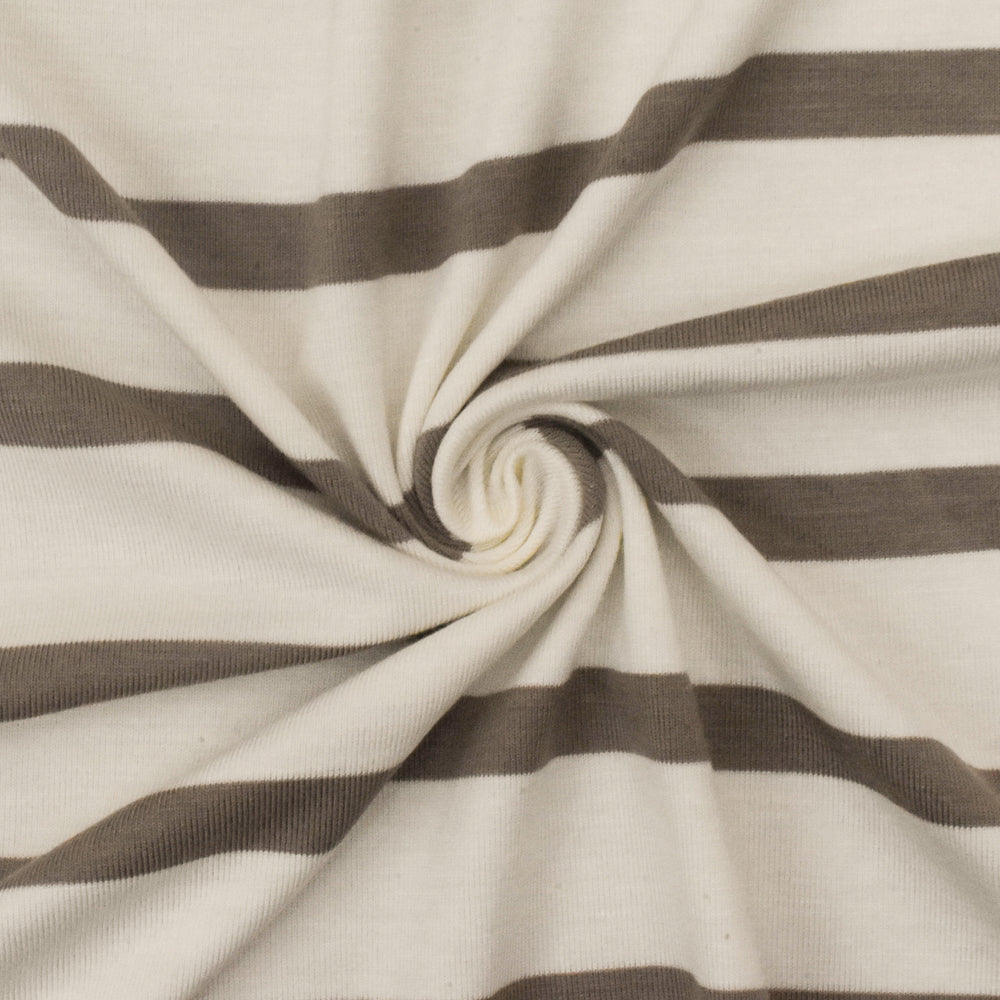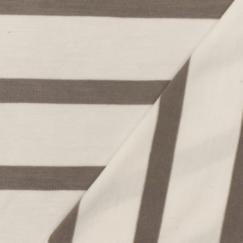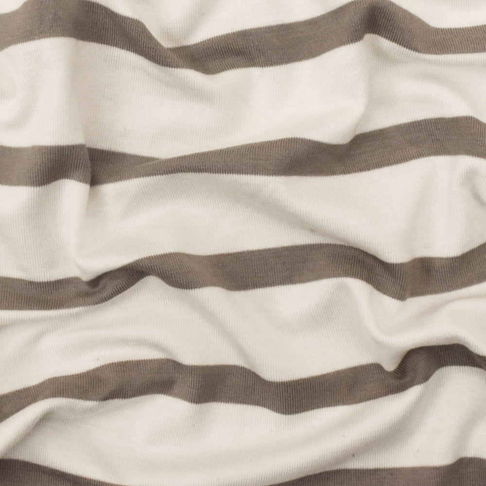 Taupe-Ivory Stripe Stretch Spandex Rayon Modal Jersey Knit Fabric