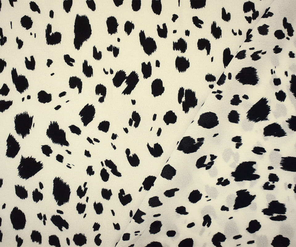 Black-White Famous Designer Spots Print Dobby Crepe Woven Fabric