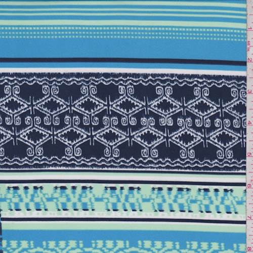 1 1/2 YD PC-Navy/Sky/Jade Deco Patchwork Activewear/Swimwear Fabric