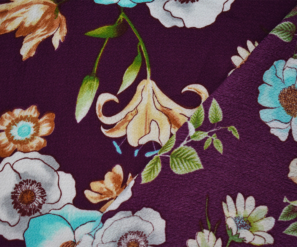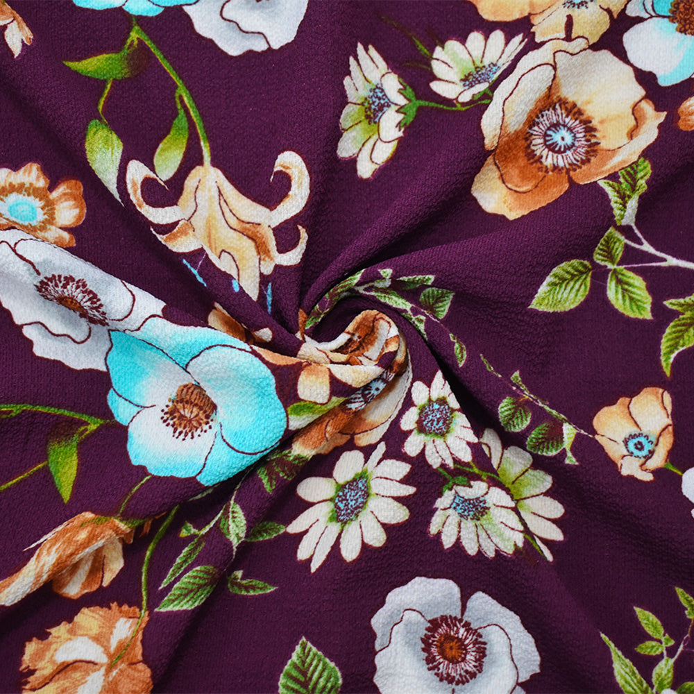 1 YD PC -100% Polyester pebble crepe dobby woven fabric printed with a floral pattern