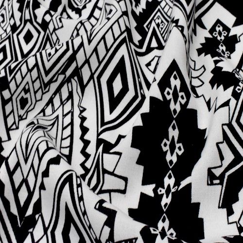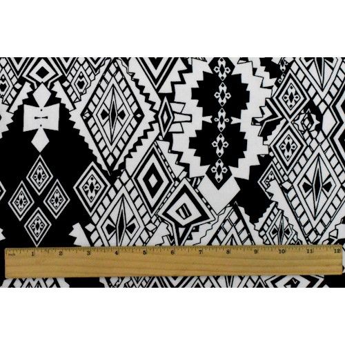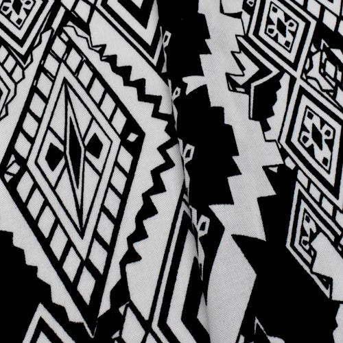 2 YD PC-Black/White Tribal Printed Cotton Shirting Woven Fabric