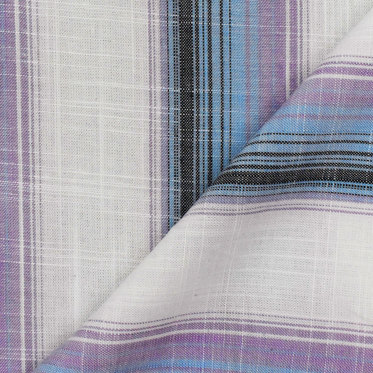 2 YD PC-Purple-Multi Famous Maker Striped Cotton Cross-Hatch Woven Shirting Fabric